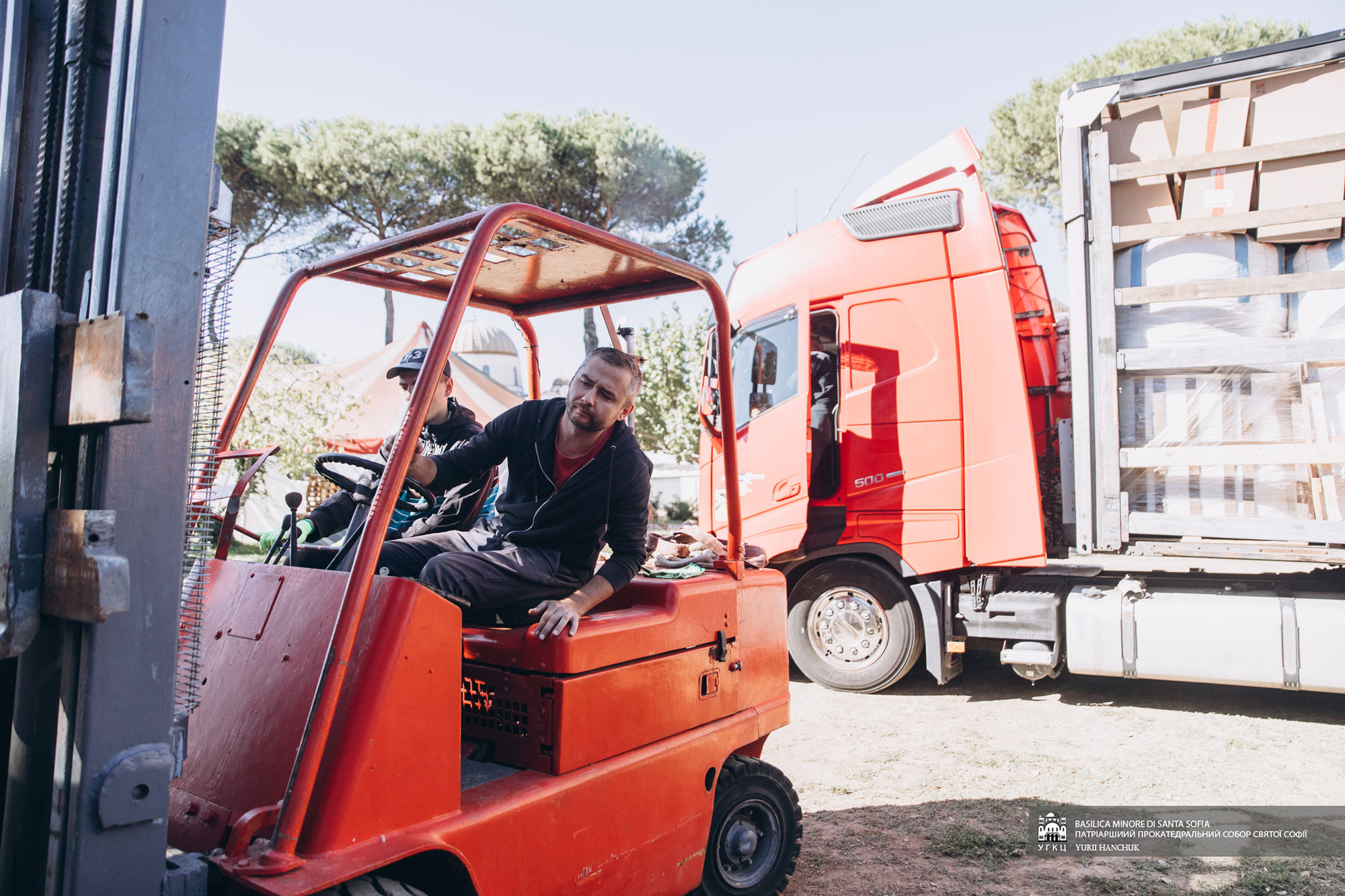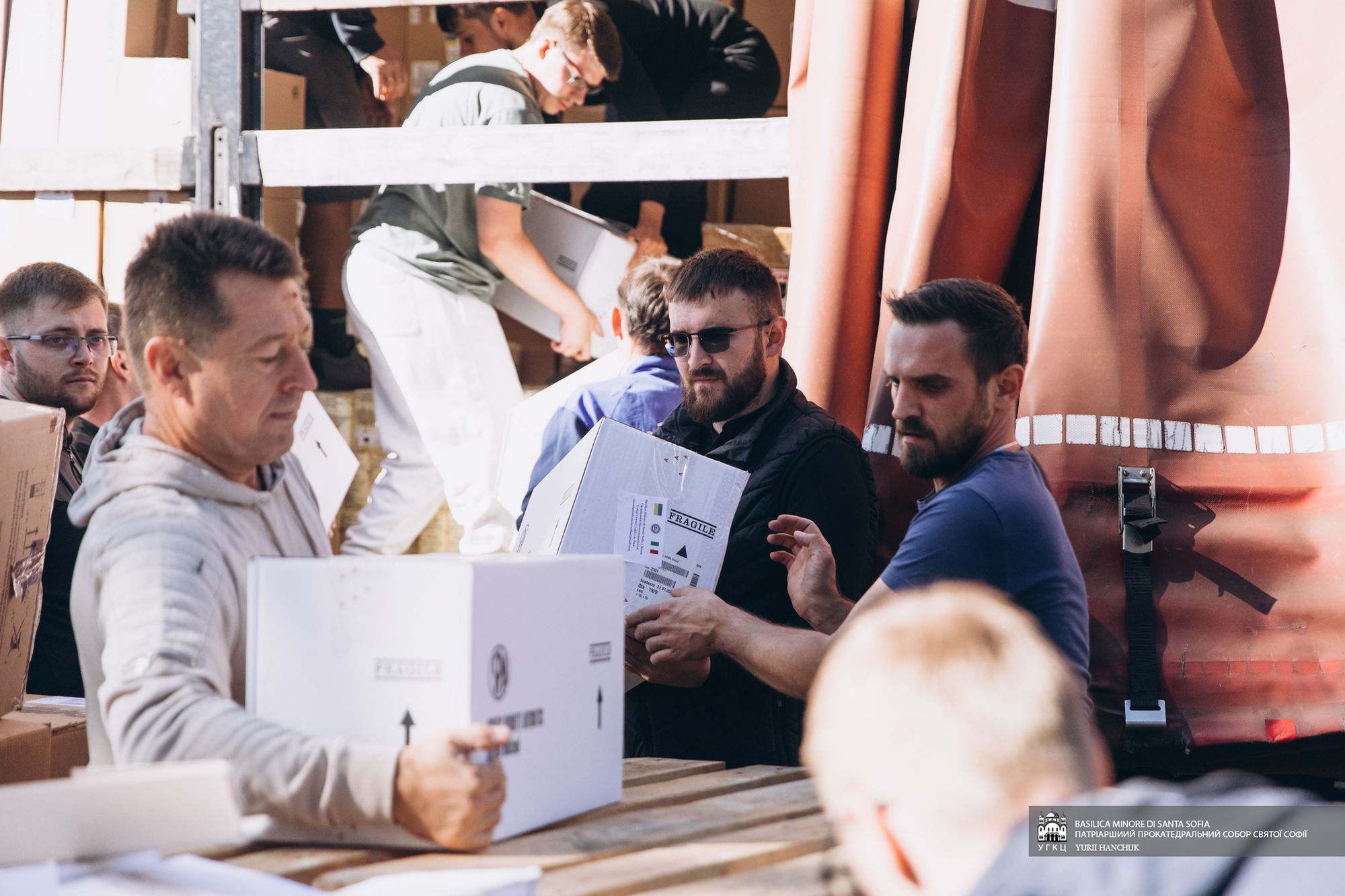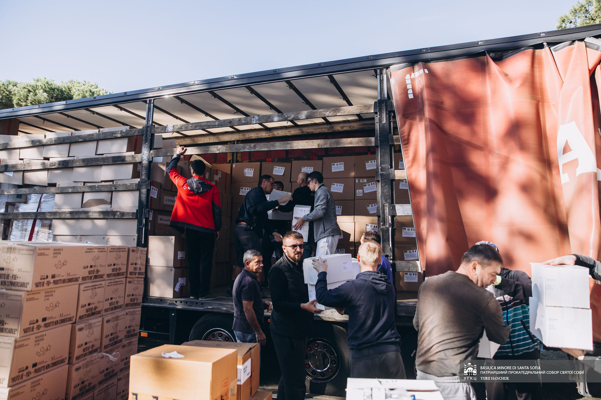 До завантаження гуманітарної допомоги традиційно долучилися віряни Патріаршої прокатедри Святої Софії, волонтери, студенти Папської української колегії святого Йосафата, а також священнослужителі та монахині.