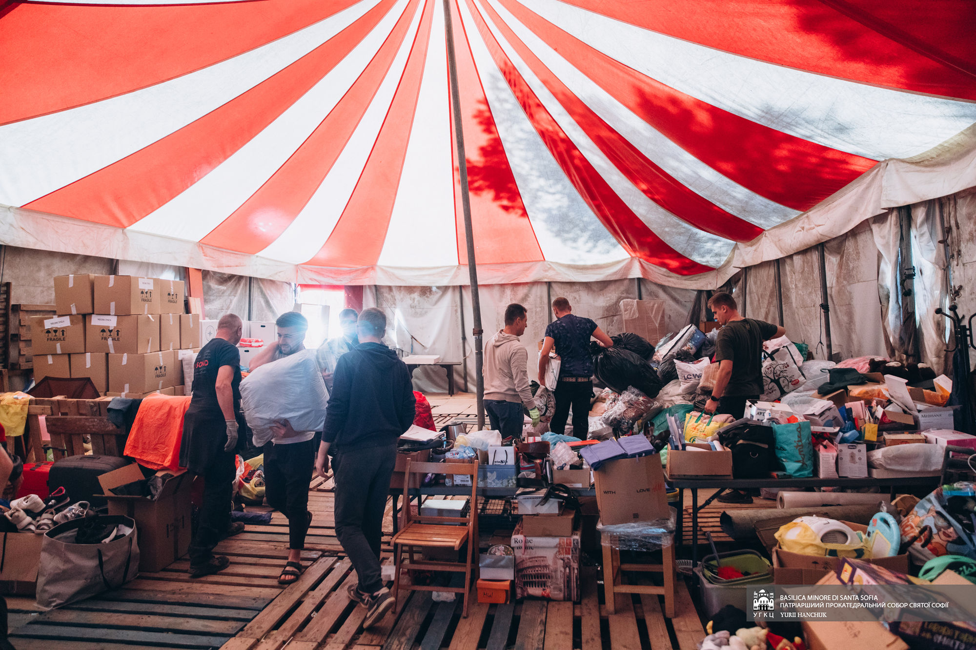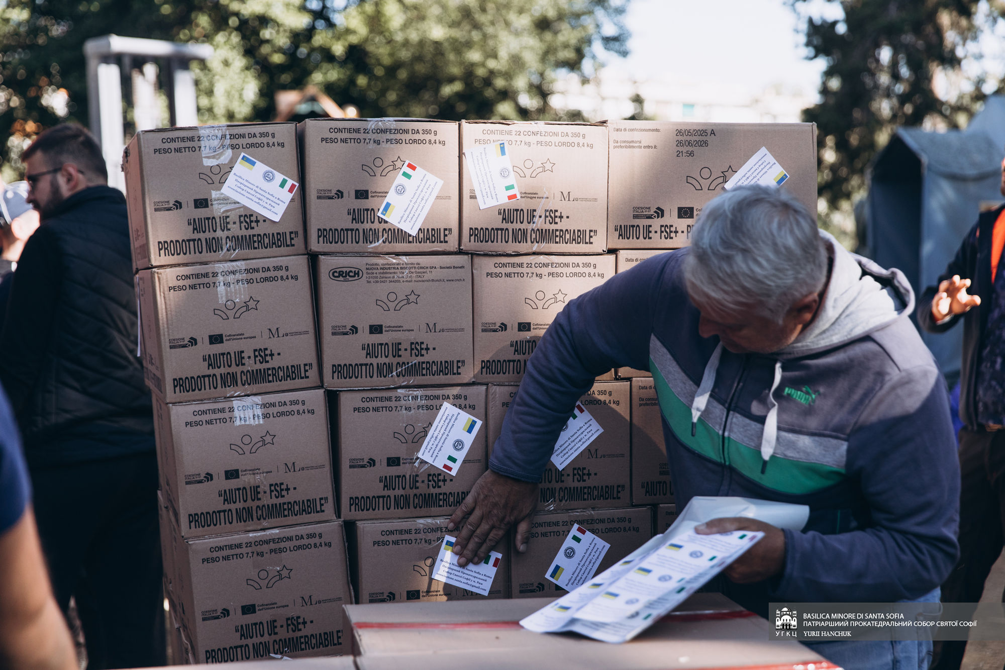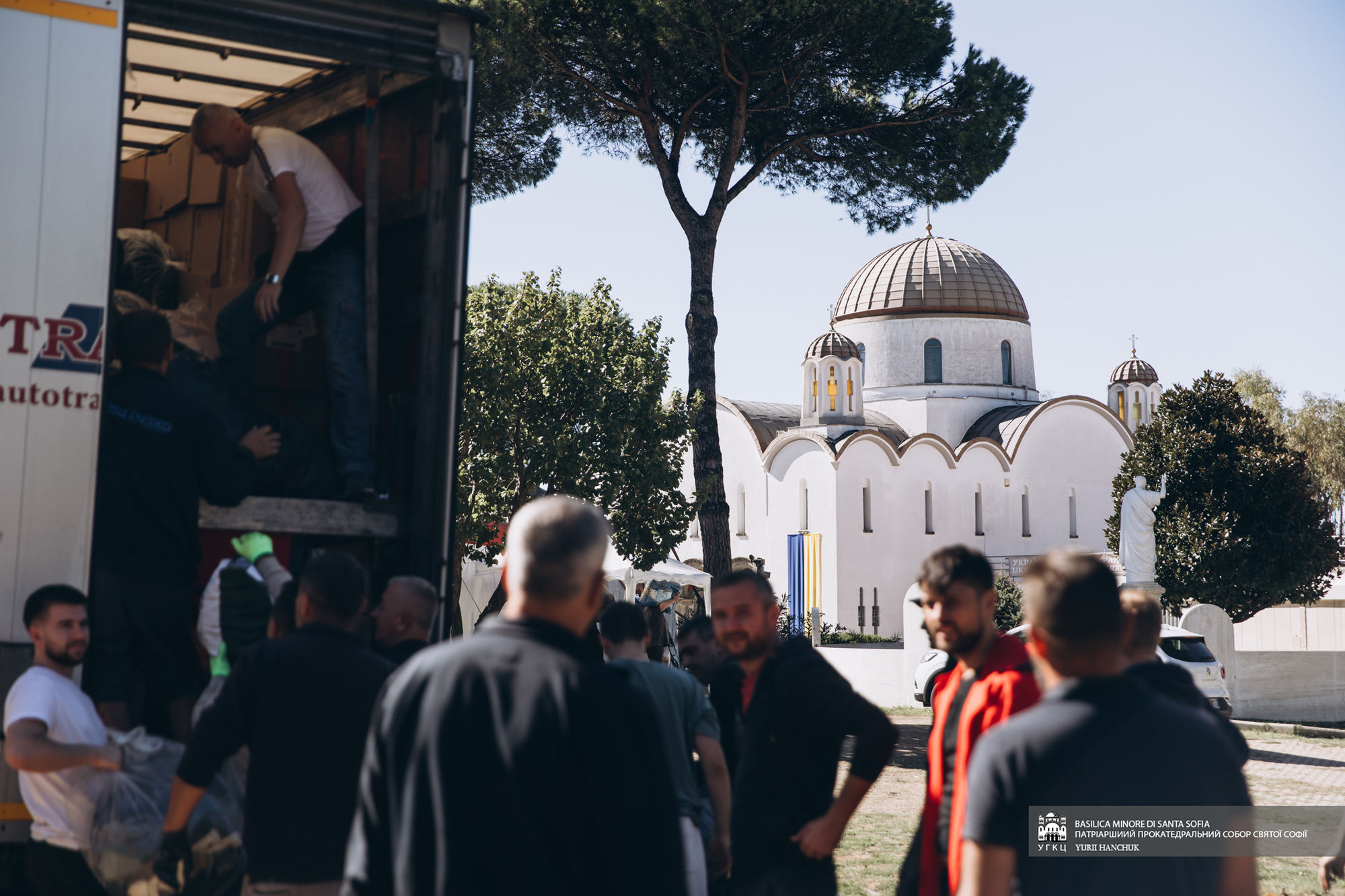 До завантаження гуманітарної допомоги традиційно долучилися віряни Патріаршої прокатедри Святої Софії, волонтери, студенти Папської української колегії святого Йосафата, а також священнослужителі та монахині.