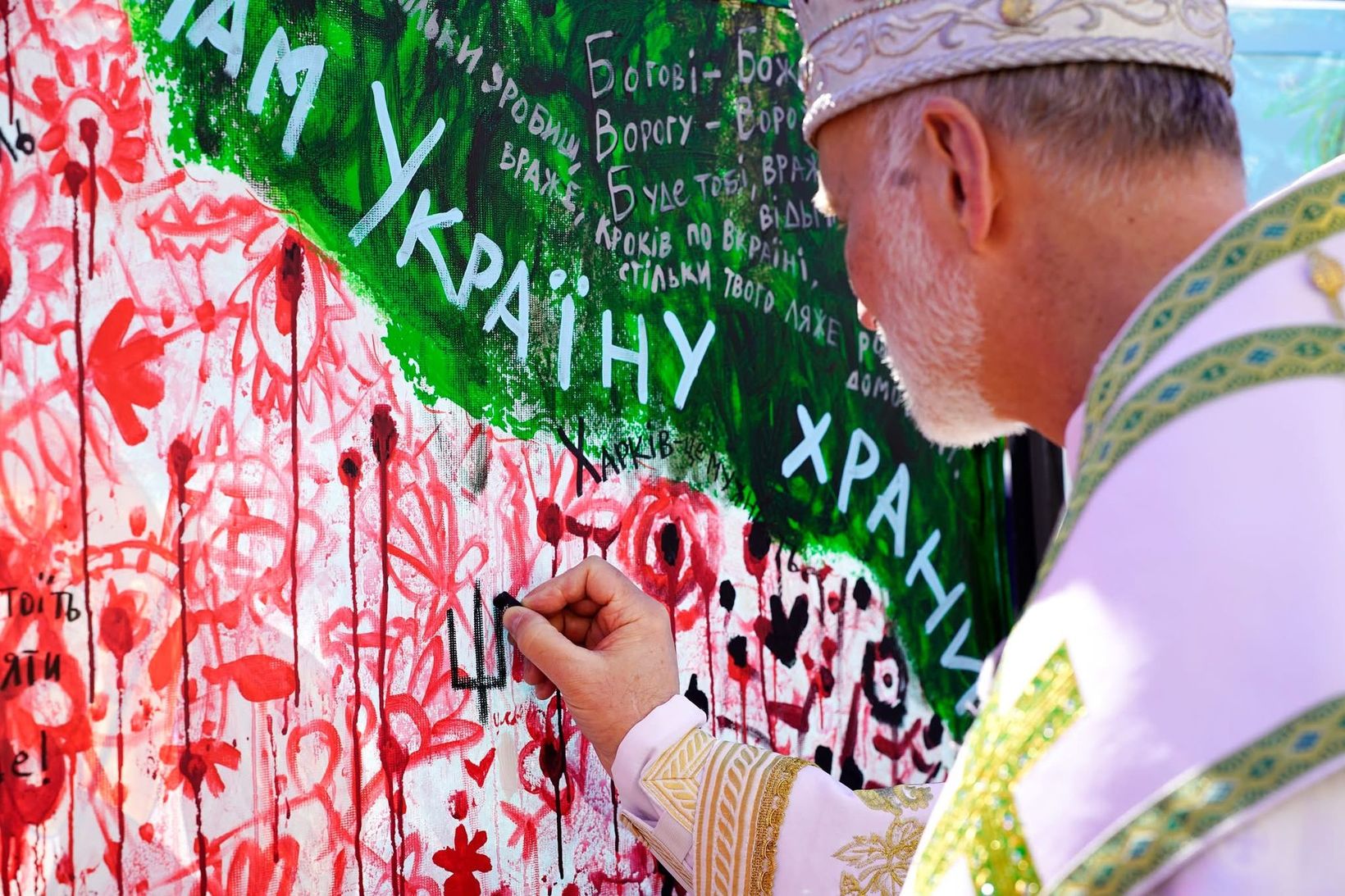 Освячення панно відбулося після архієрейської божественної літургії, яку очолив владика Борис Ґудзяк, митрополит Філадельфійський.