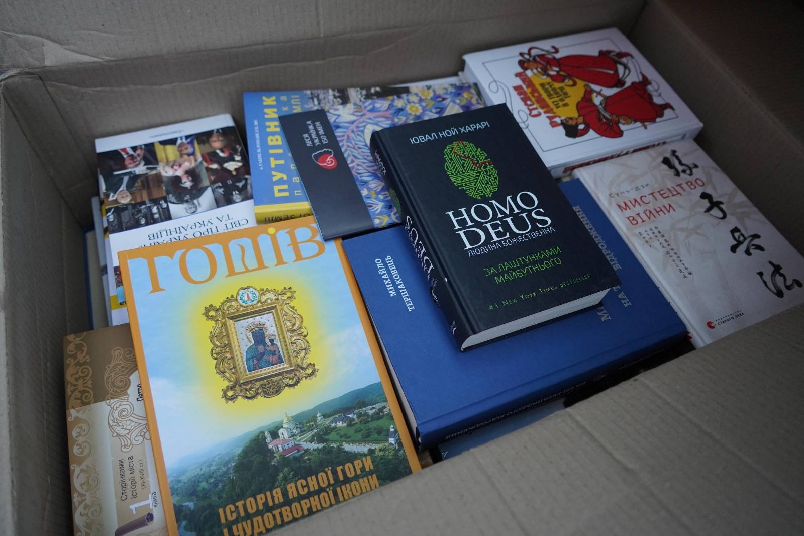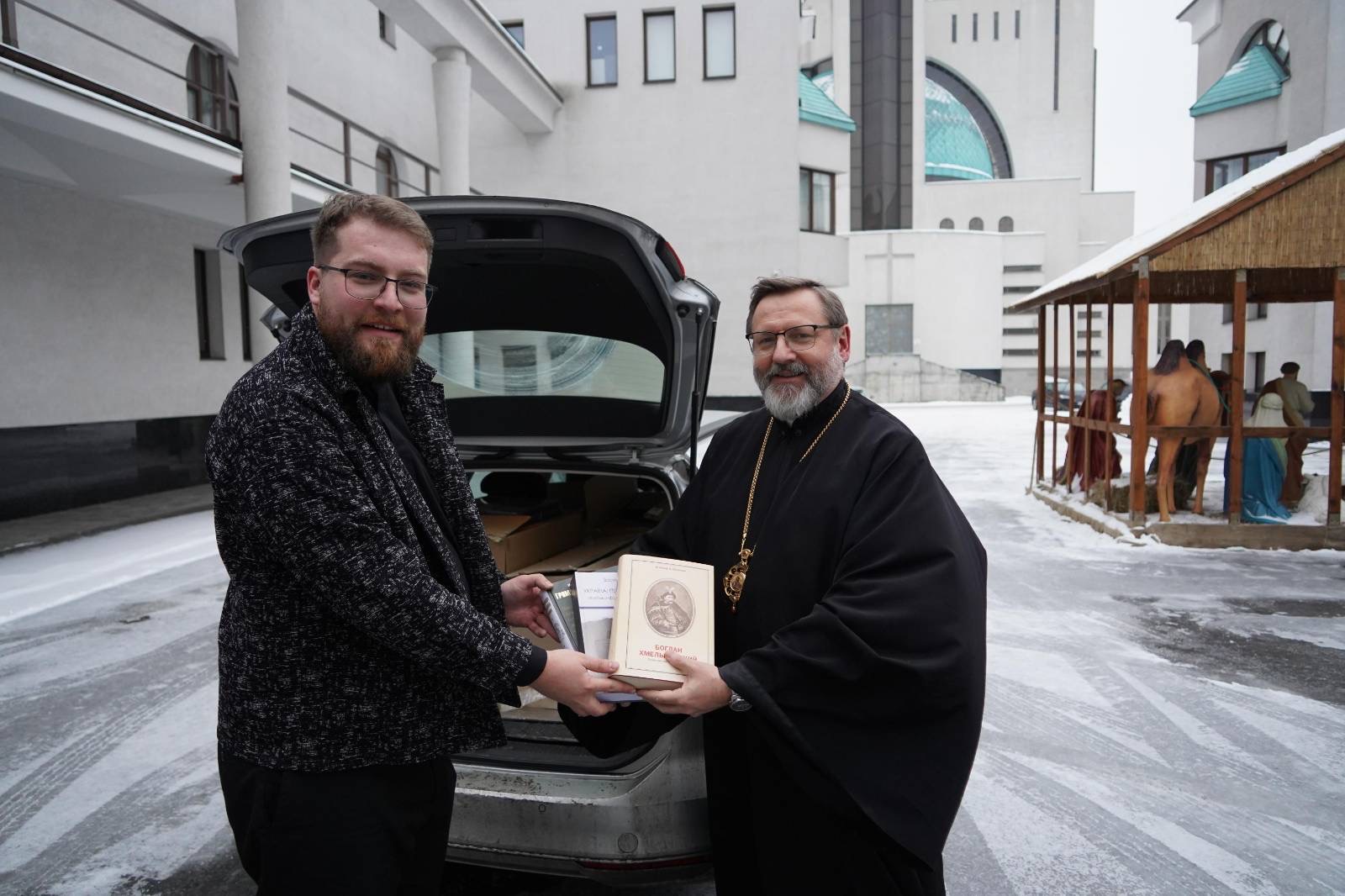 Книги до Черкас особисто забрав о. Ігор Котенко, настоятель храму Покрову Пресвятої Богородиці УГКЦ у Черкасах і директор «Карітас-Черкаси».