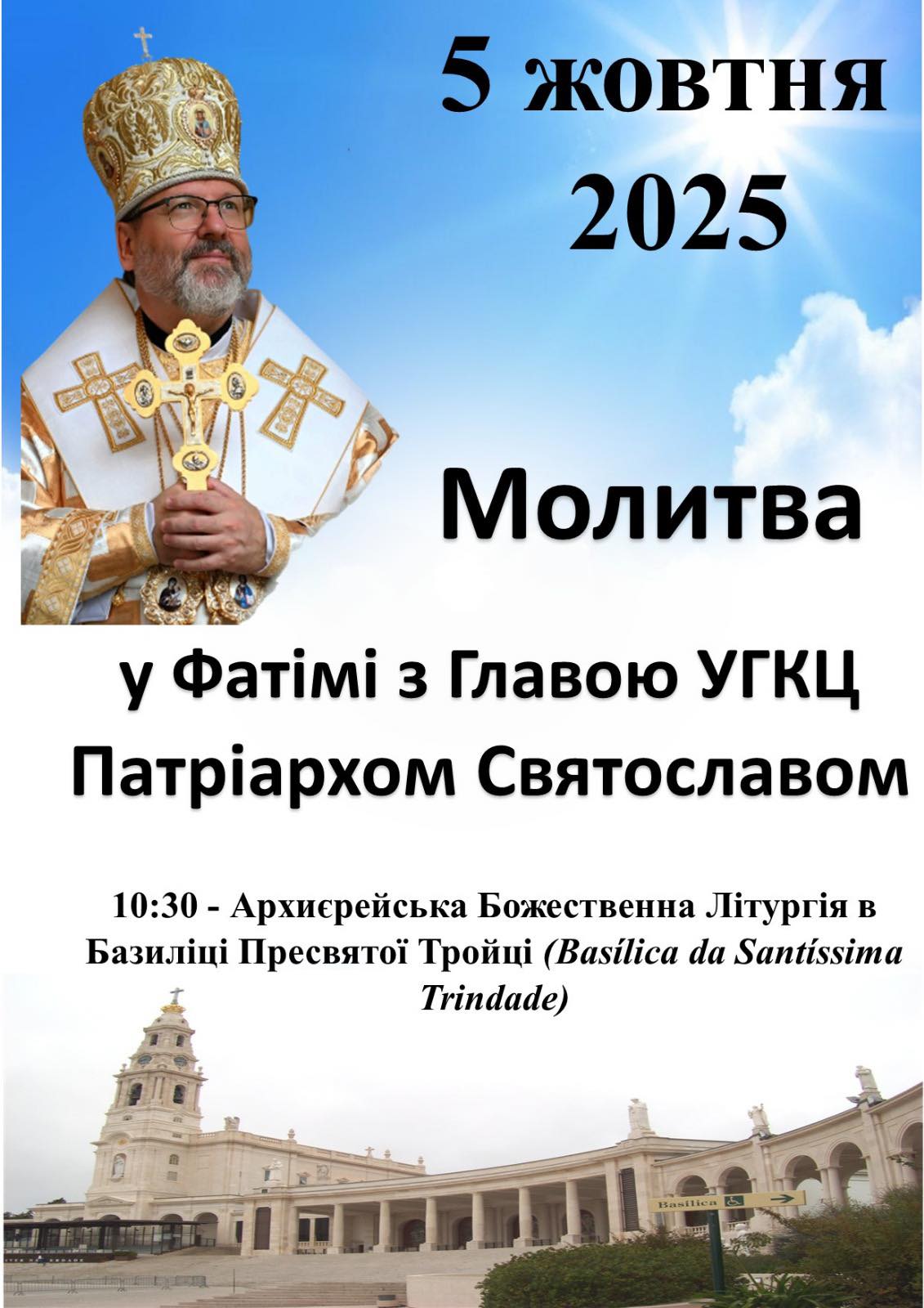У суботу, 4 жовтня, ввечері Отець і Глава УГКЦ Блаженніший Святослав прибув до Лісабона, звідки розпочав офіційний візит до Португалії. У неділю, 5 жовтня, під проводом Глави Церкви українці з Португалії та інших країн Західної Європи звершать паломництво до Фатіми. Опісля Глава УГКЦ візьме участь у Пленарній асамблеї Ради Єпископських конференцій Європи (CCEE).