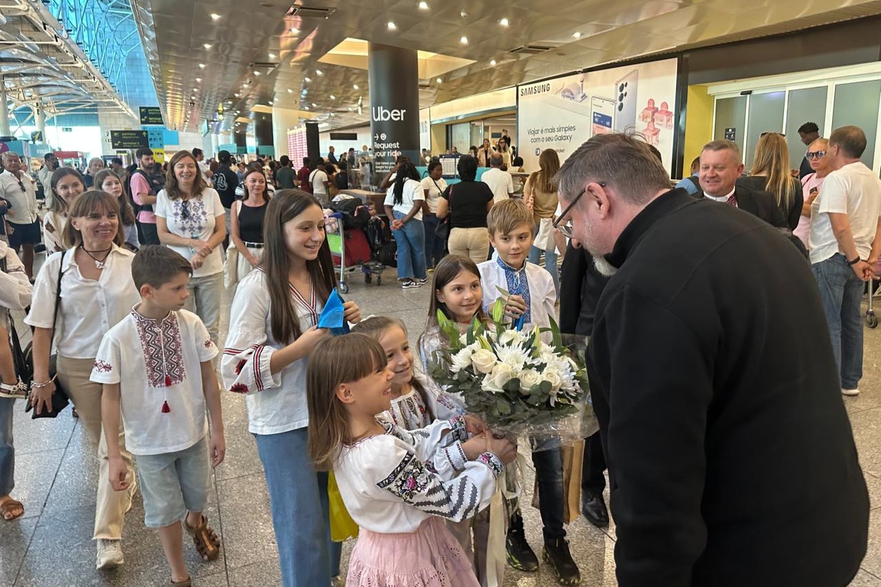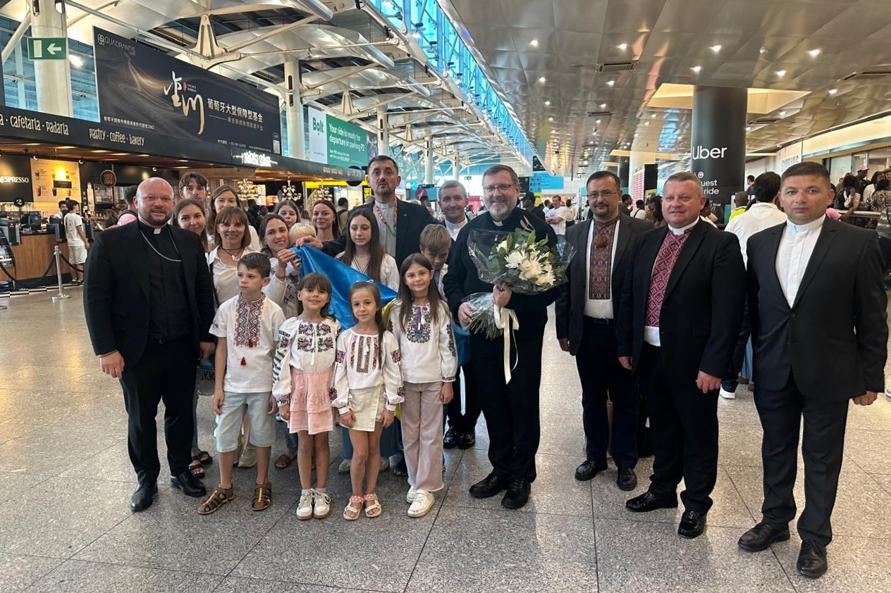 У міжнародному аеропорту Портела столиці Португалії Блаженнішого Святослава та його особистого секретаря о. Олега Олексу зустріла українська громада на чолі із владикою Степаном Сусом, головою Пасторально-міграційного відділу УГКЦ. Із владикою Главу УГКЦ вітали: о. Іван Петляк, координатор Капеланії УГКЦ у Португалії, о. Матей Дзюрбан, ЧСВВ, настоятель делегатури ЧСВВ святого Йосафата в Португалії, який прибув разом із малими парафіянами парафії Різдва Пресвятої Богородиці в Лісабоні, та інші священники УГКЦ, які здійснюють служіння в Португалії.