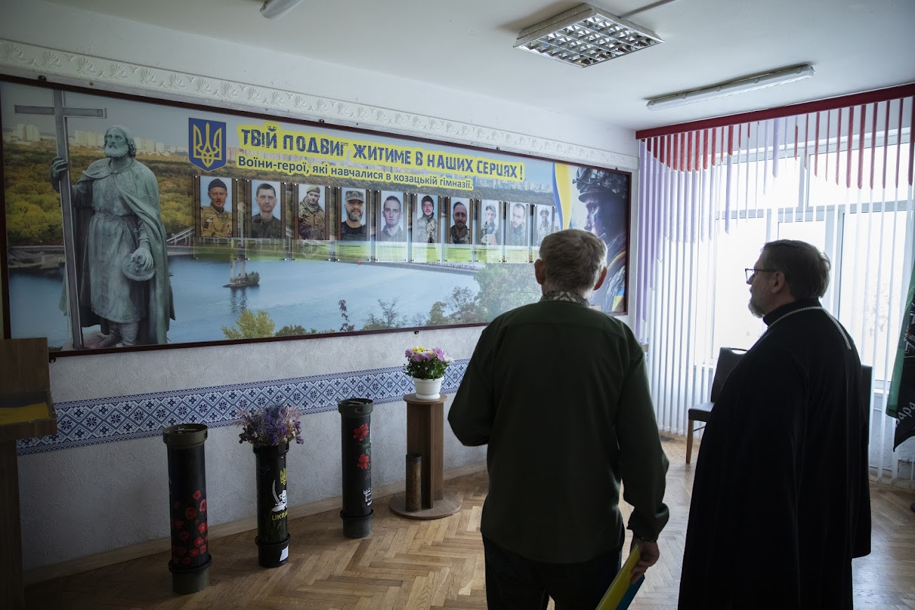На завершення візиту Блаженніший Святослав відвідав місце вшанування полеглих захисників — випускників ліцею. Він зазначив, що ці воїни і сьогодні продовжують виховувати нові покоління патріотів України, надихаючи їх своїм життям та жертовністю.