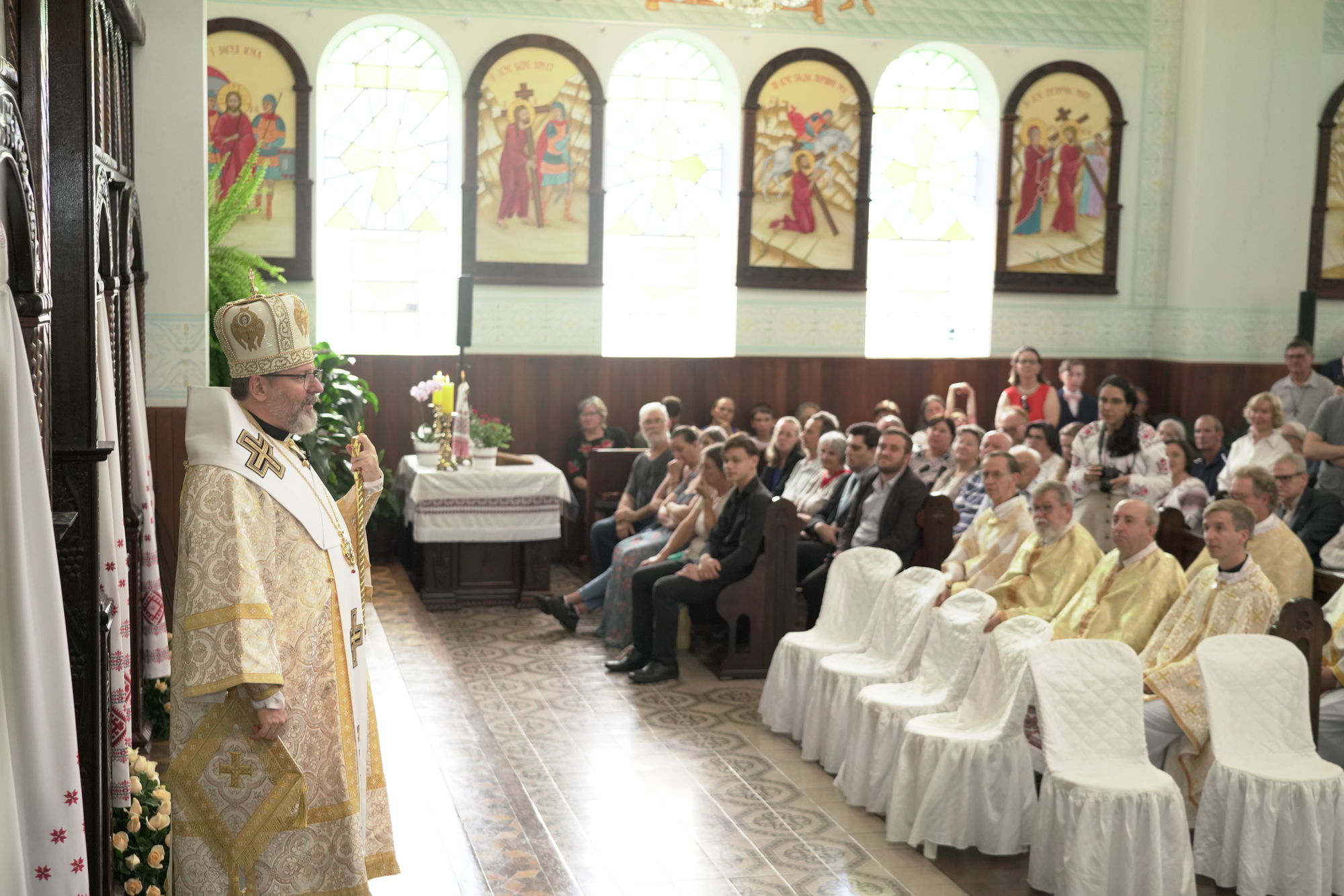 «Сьогодні тут, у цьому історичному катедральному соборі, ми разом з вами святкуємо свято єдності глобальної світової Української Греко-Католицької Церкви, — наголосив Патріарх. — Хоча ми переживаємо трагічний час війни, Ваша мати-Церква в Україні дуже любить вас. Тому ми приїжджаємо, щоб обійняти наших синів і дочок тут, у Бразилії».