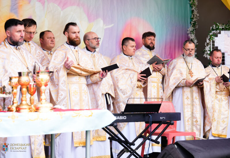 Центральною подією стала Архиєрейська Божественна Літургія, яку очолив екзарх Донецький владика Максим Рябуха. Богослужіння відбулося просто неба.