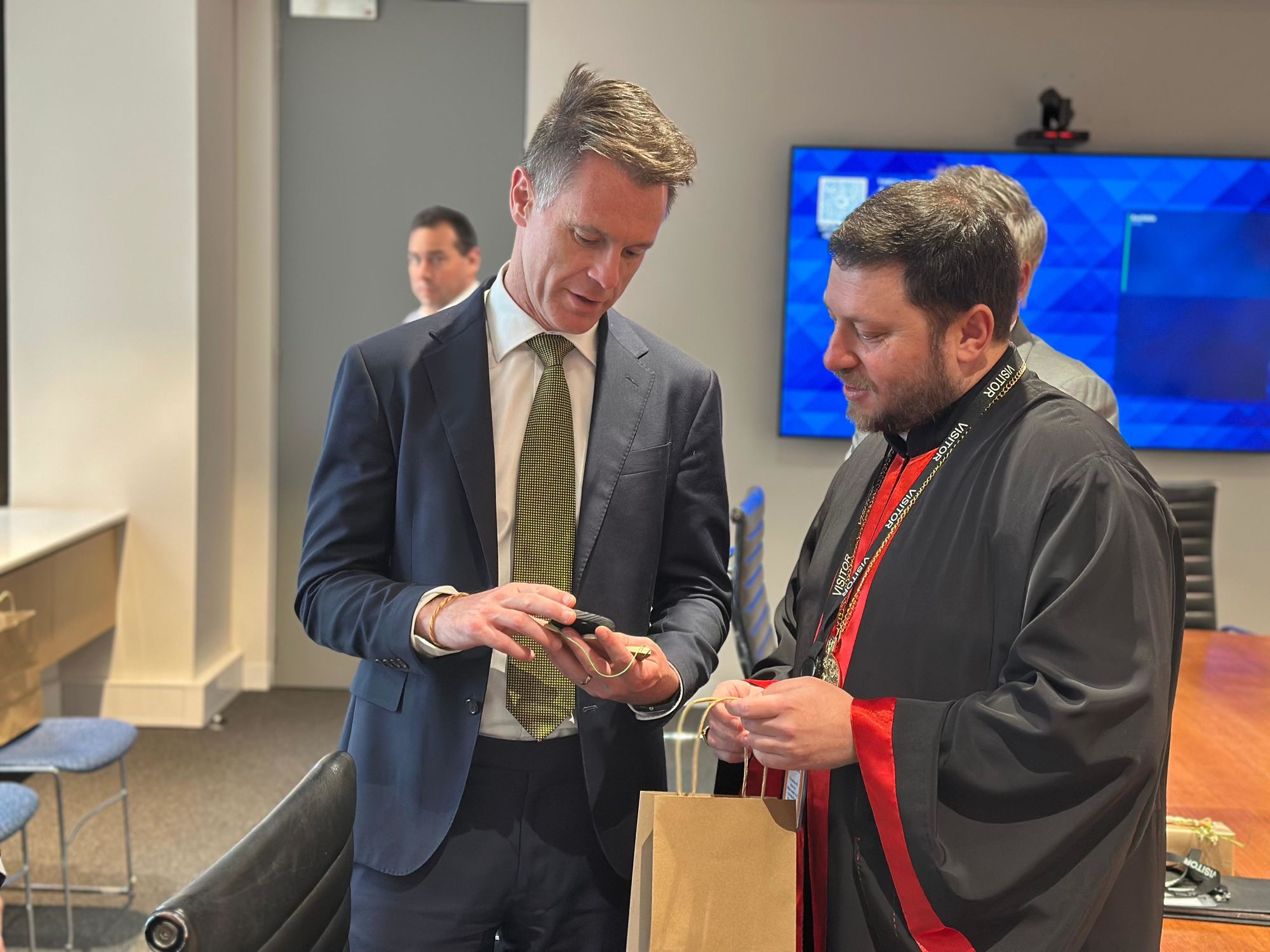 У четвер, 11 грудня, владика Микола кардинал Бичок, єпарх Мельбурнський, та о. Любомир Яворський, патріарший економ, який зараз перебуває в Австралії, провели зустрічі із провідними парламентарями штату Новий Південний Уельс.