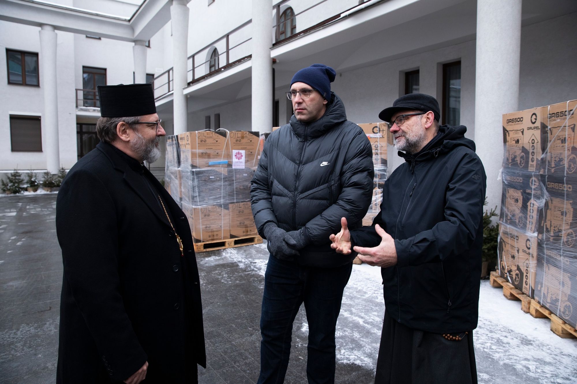 «Ми сьогодні були свідками дуже гарної зустрічі. Приїхала перша партія допомоги, яку зібрав „Карітас“ архидієцезії Кракова. Це тільки початок величезної допомогової акції солідарності з Польщі для потребуючих людей у Києві», — зазначив Глава УГКЦ Блаженніший Святослав.