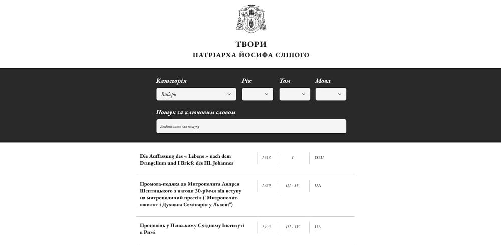 Особливість ресурсу — зручна система пошуку, яка дає змогу знаходити тексти за категоріями (богослов’я, проповіді, листи, промови, звіти тощо), роками написання, мовами та томами видання. Також передбачено пошук за ключовими словами, що відкриває можливості не лише для читання, а й для глибшого дослідження матеріалів.
