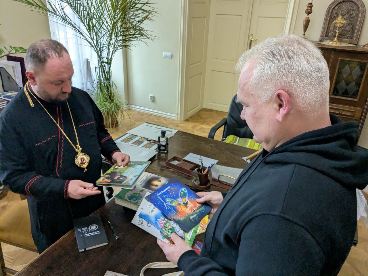 Владика Теодор ознайомився з виданнями Екобюро УГКЦ, охопно з українськими перекладами енцикліки «Laudato Si’» та апостольського повчання «Laudate Deum», а також зі сучасними екосоціальними ініціативами — екологічними місіями та проєктом «Сади надії». Єпископ висловив зацікавлення душпастирським виміром екологічного служіння та підтвердив готовність до розвитку спільних проєктів.