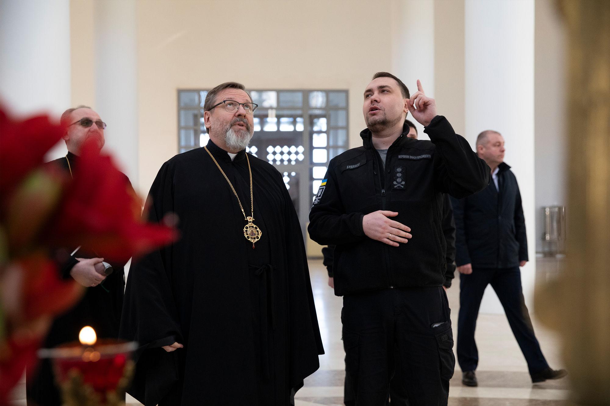Після зустрічі Кирило Буданов відвідав Патріарший собор Воскресіння Христового. Блаженніший Святослав представив архітектурний задум храму та розповів про його роль у час війни. У криптах собору оглянули укриття, яке під час минулої складної зими функціонувало і як Центр стійкості. Сьогодні адміністративний центр УГКЦ також виконує важливу гуманітарну місію: звідси щодня доставляють приблизно 800 гарячих обідів потребуючим особам.