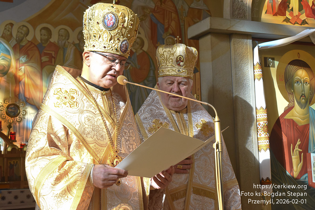 Вітальний лист Глави Церкви владиці Петру вручив архиєпископ і митрополит Перемишльсько-Варшавський Євген Попович під час Архиєрейської Божественної Літургії у Перемишлі в неділю, 1 лютого.