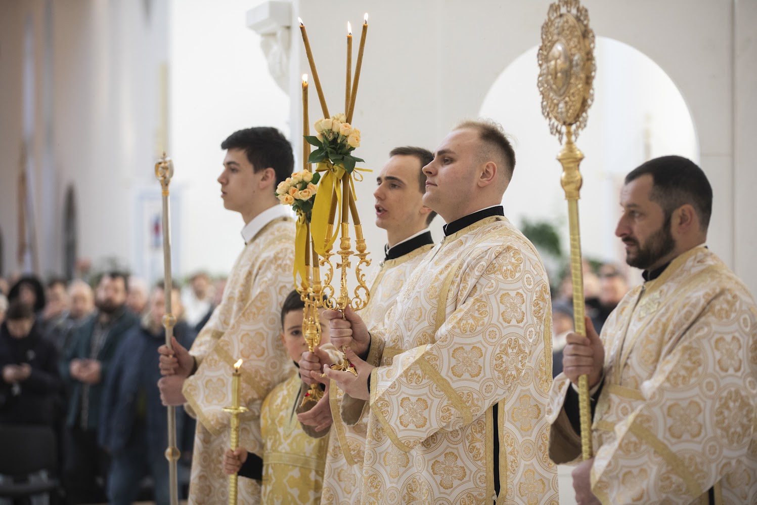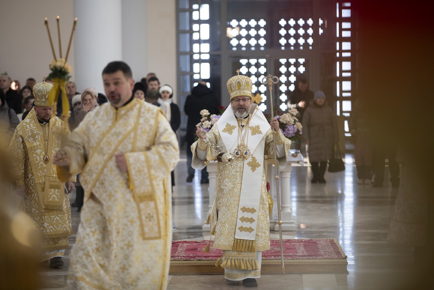 Під час Архиєрейської Божественної Літургії із Блаженнішим Святославом співслужили владика Андрій Хім’як, єпископ-помічник Київської архиєпархії, і владика Степан Сус, єпископ Курії Києво-Галицького Верховного Архиєпископа.