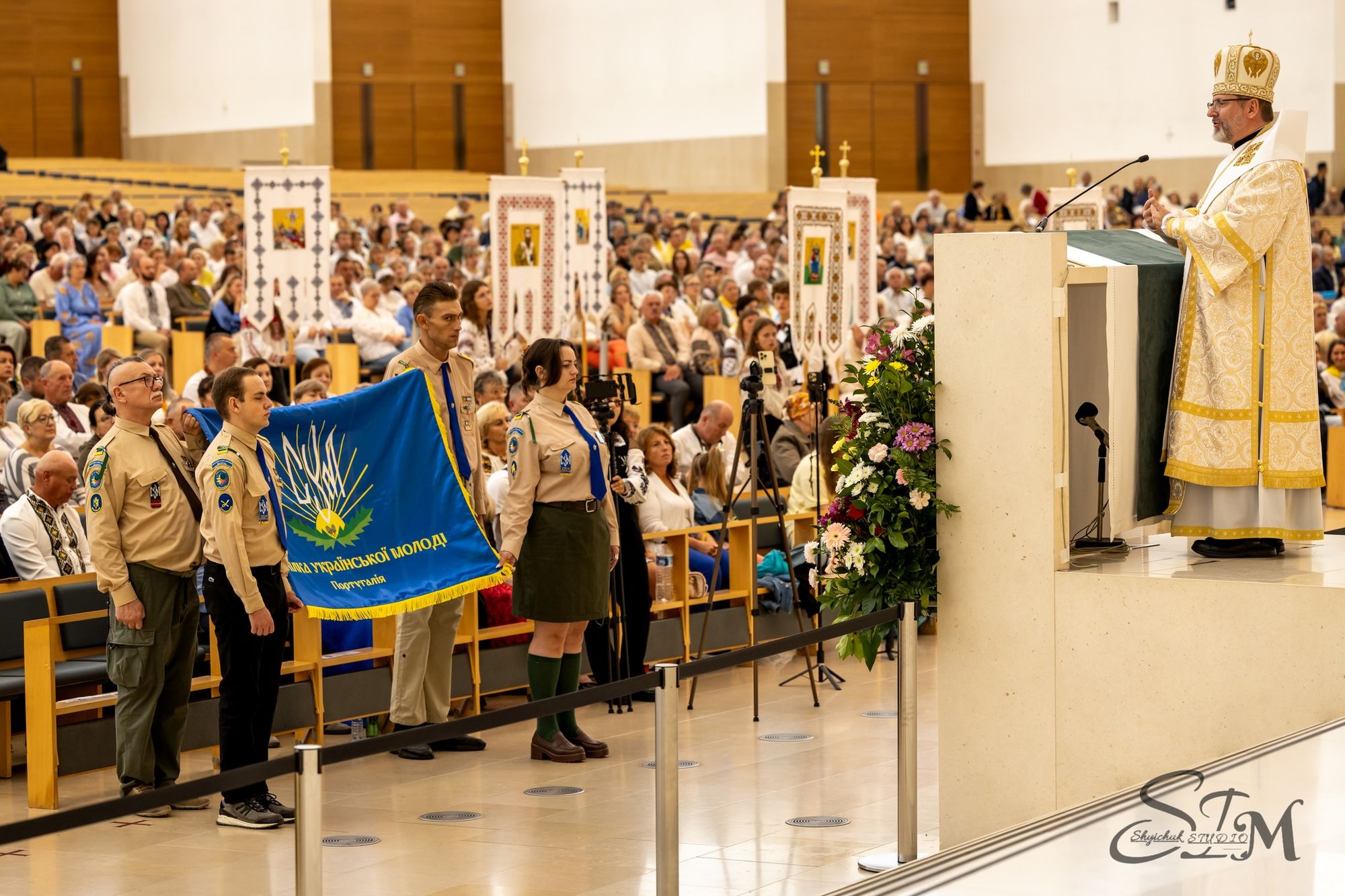 Перед Богослужінням Отця і Главу УГКЦ у Фатімі привітав архиєпископ Жозе, єпископ Фатіми-Лейрії та голова Конференції католицьких єпископів Португалії.