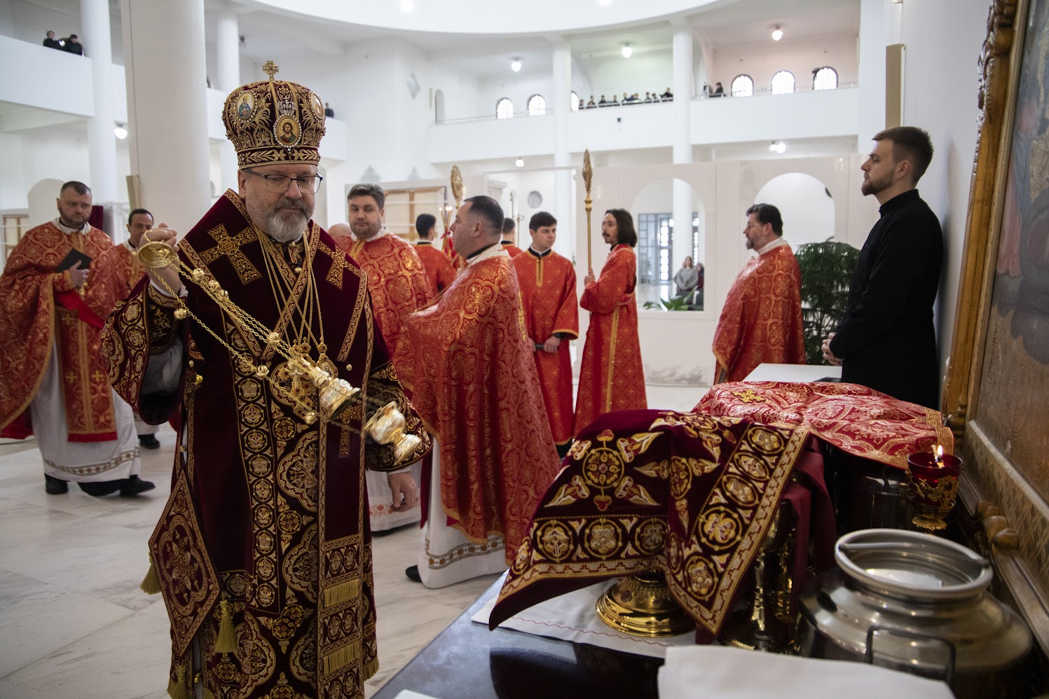 У Великий четвер, 9 квітня, у Патріаршому соборі в Києві Отець і Глава УГКЦ Блаженніший Святослав очолив Вечірню з Літургією Василія Великого. Під час проповіді Предстоятель звернув особливу увагу на дар священства та закликав душпастирів не намагатися «щось робити для Бога», а дозволити Христові діяти через них, стаючи живою часткою Його служіння стражденному народові України.