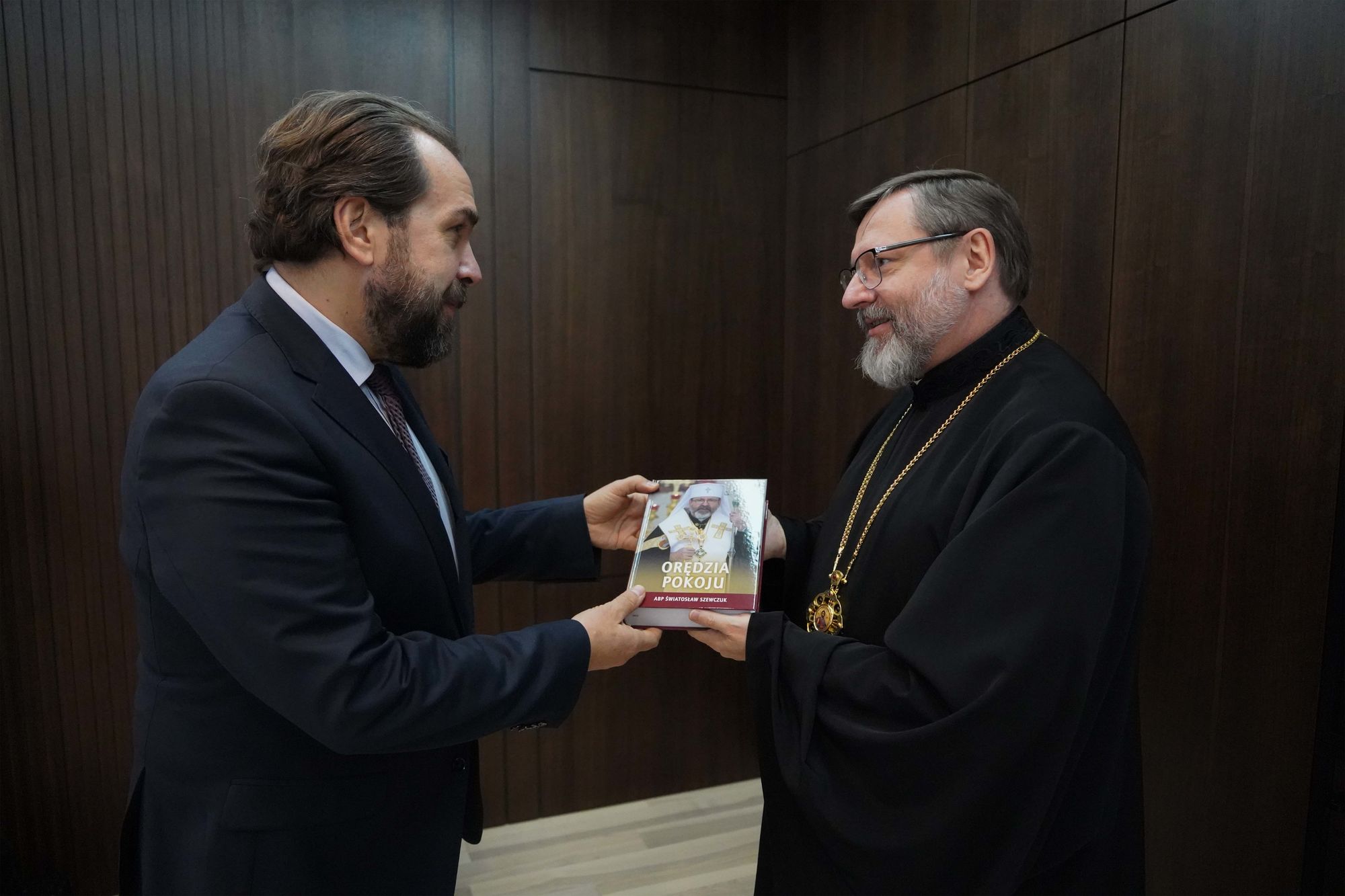 На завершення зустрічі Блаженніший Святослав подарував панові Пйотру Лукасєвічу видання своїх щоденних звернень у перший рік повномасштабної війни польською мовою «Послання миру» («Orędzia pokoju») та низку інших книг.