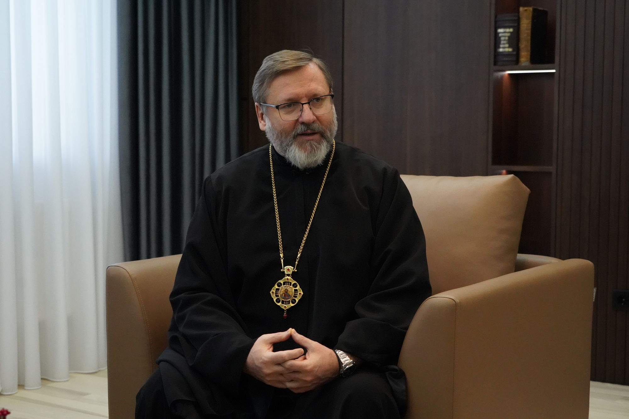 Блаженніший Святослав, описуючи гуманітарну ситуацію в столиці та інших містах, наголосив: «Ми перебуваємо на межі гуманітарної катастрофи. Коли температура падає до мінус десяти, йдеться вже не лише про відсутність світла, а про неможливість жити в багатоповерхових будинках, де порвалися труби і немає тепла», — зазначив він.
