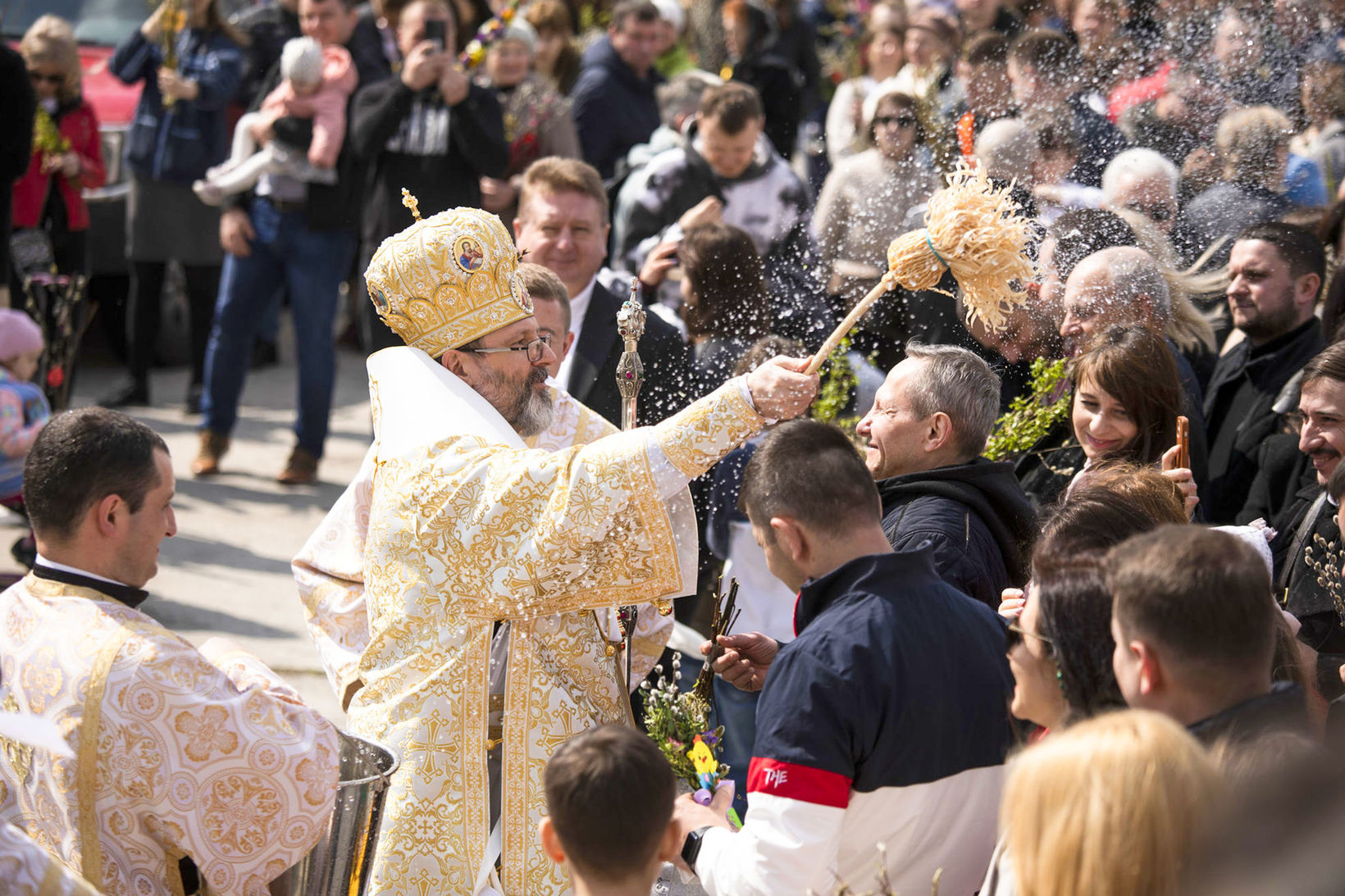 Так, у цьому випадку освячується вербова гілка, і при необхідності людина хоче скористатися цією можливістю, щоб освятити ікону, чи хрест, чи ще щось. Про це священника просять окремо. Він читає відповідну молитву. І потім, звичайно, він окроплюється святою водою, і тоді ця річ освячена.