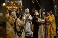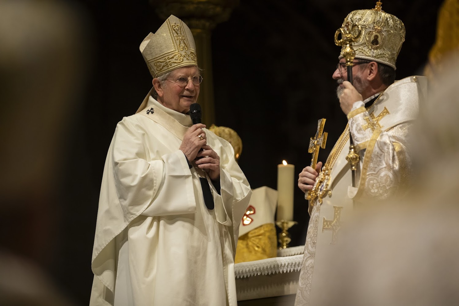 Наприкінці Божественної Літургії Патріарх висловив вдячність владиці Глібові Лончині, який протягом семи років був апостольським адміністратором єпархії Святого Володимира Великого в Парижі.