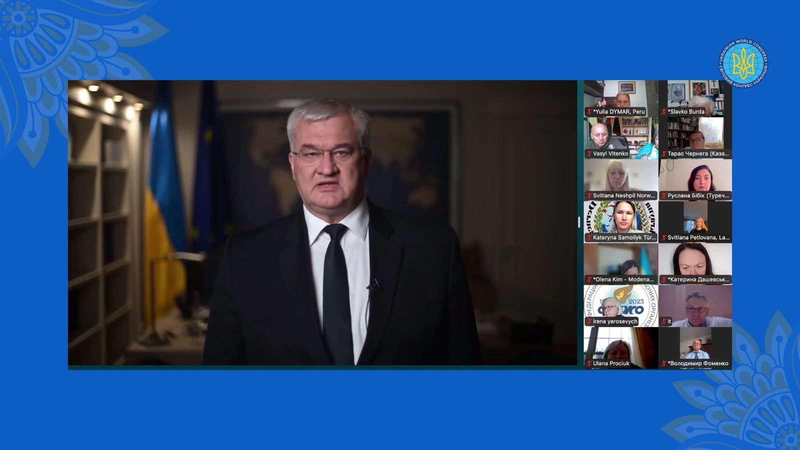 Вітаючи президента СКУ Павла Ґрода, делегатів і представників українських організацій, Блаженніший наголосив на значенні цієї події для українців усього світу: «Загальні річні збори Світового конгресу українців — це гарна нагода підсумувати пройдений шлях за останній рік, подякувати Господу Богові за всі добрі діла, які ми разом могли здійснити, зробити оцінку наших вчинків, зробити іспит сумління з усього того, що, можливо, нам не вдалося втілити. Це також ще одна добра нагода послухати один одного і відчути, як сьогодні бʼється серце нашого народу в умовах повномасштабної геноцидної війни, яку росія веде проти нашої Батьківщини».