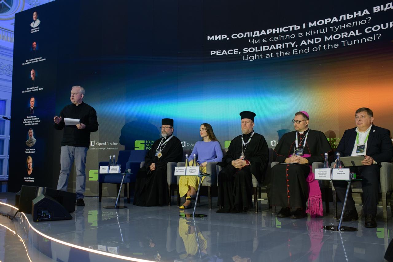 Дискусію модерував директор форуму, дипломат Данило Лубківський. Участь у ній також взяли представники найбільших релігійних спільнот України: голова Центру громадянських свобод, лауреатка Нобелівської премії миру 2022 року Олександра Матвійчук, речник Православної Церкви України митрополит Євстратій Зоря, Апостольський нунцій в Україні архиєпископ Вісвальдас Кульбокас, єпископ Ігор Бандура, заступник голови Всеукраїнського союзу церков євангельських християн-баптистів, муфтій Духовного управління мусульман України «Умма» Мурат Сулейманов і рабин Яків Синяков, капелан 7-го корпусу швидкого реагування Десантно-штурмових військ ЗСУ.
