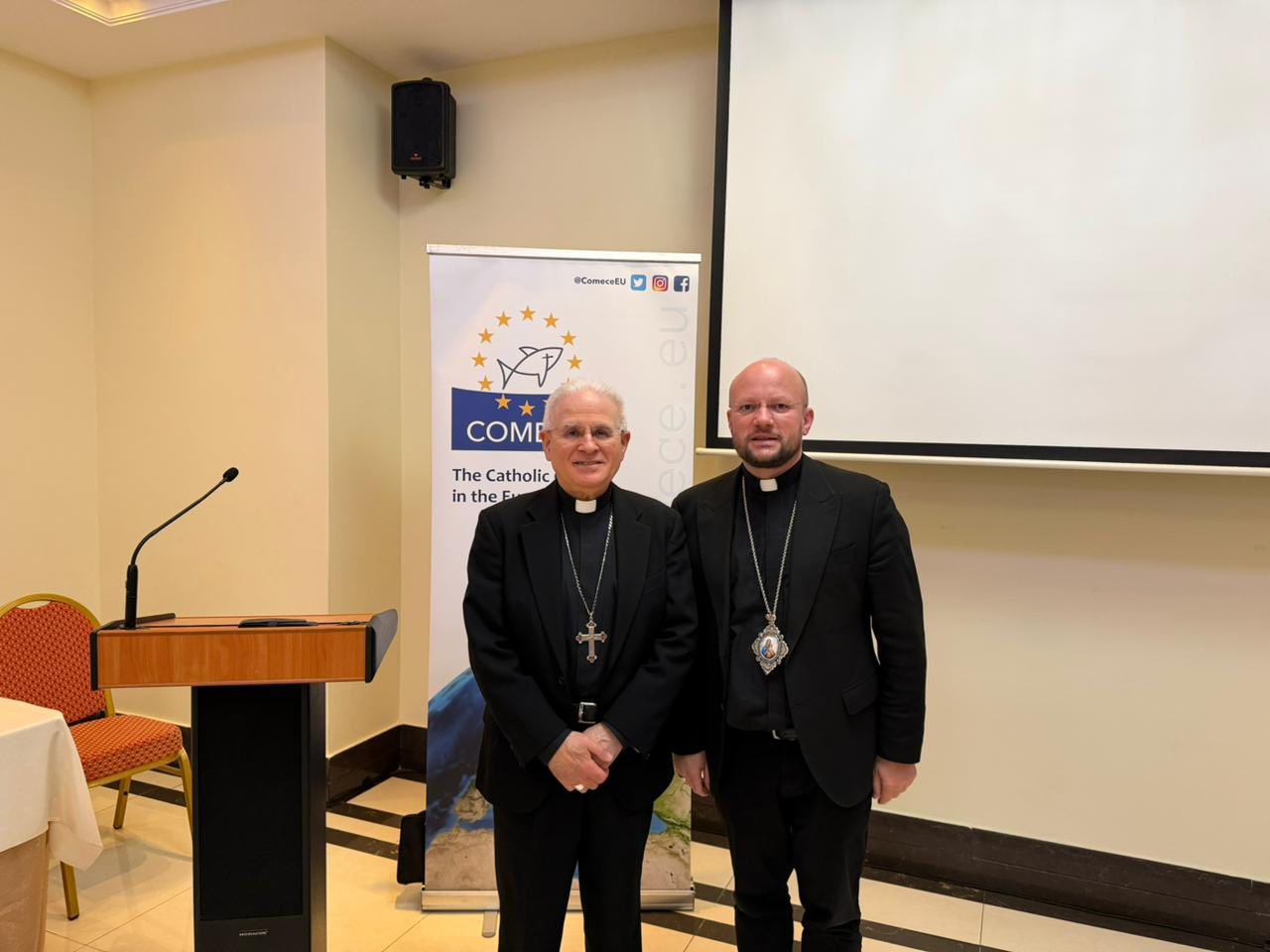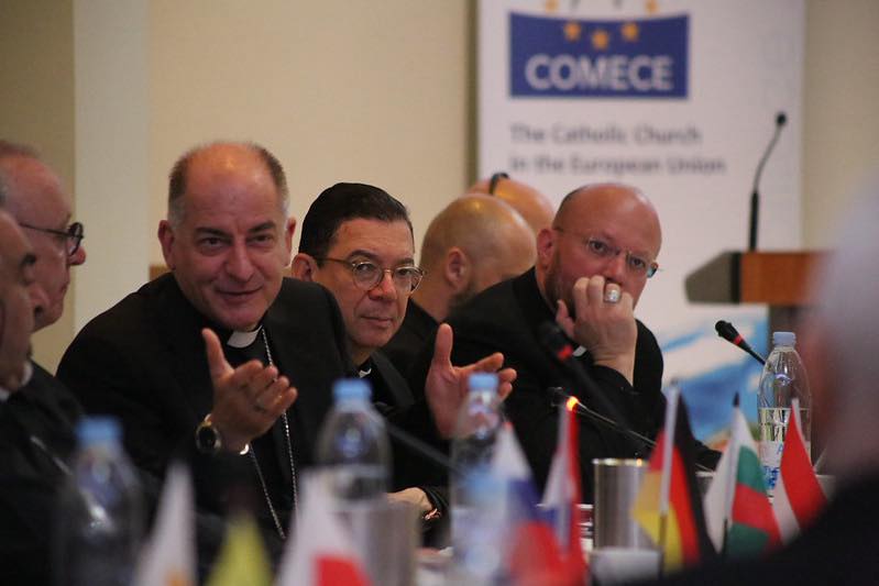 COMECE (Commission of the Bishops’ Conferences of the European Union) представляє католицькі єпископати країн-членів ЄС при інституціях ЄС. Її місія — бути голосом Церкви в публічному просторі Європи та сприяти миру, справедливості, солідарності й захисту гідності людини.