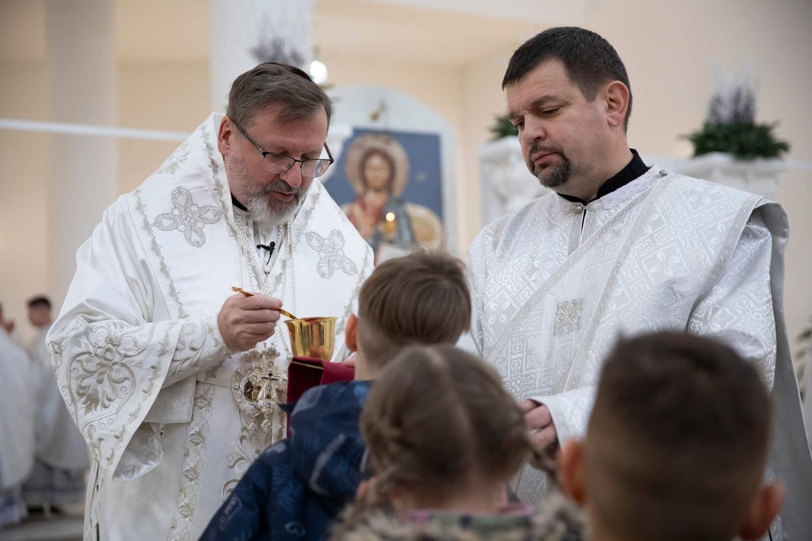 Різдвяну Божественну Літургію Отець і Глава УГКЦ очолив у Патріаршому соборі Воскресіння Христового в Києві. Із ним співслужили: Апостольський нунцій в Україні архиєпископ Вісвальдас Кульбокас, єпископ-помічник Київської архиєпархії владика Йосиф Мілян і голова Пасторально-міграційного відділу УГКЦ владика Степан Сус.