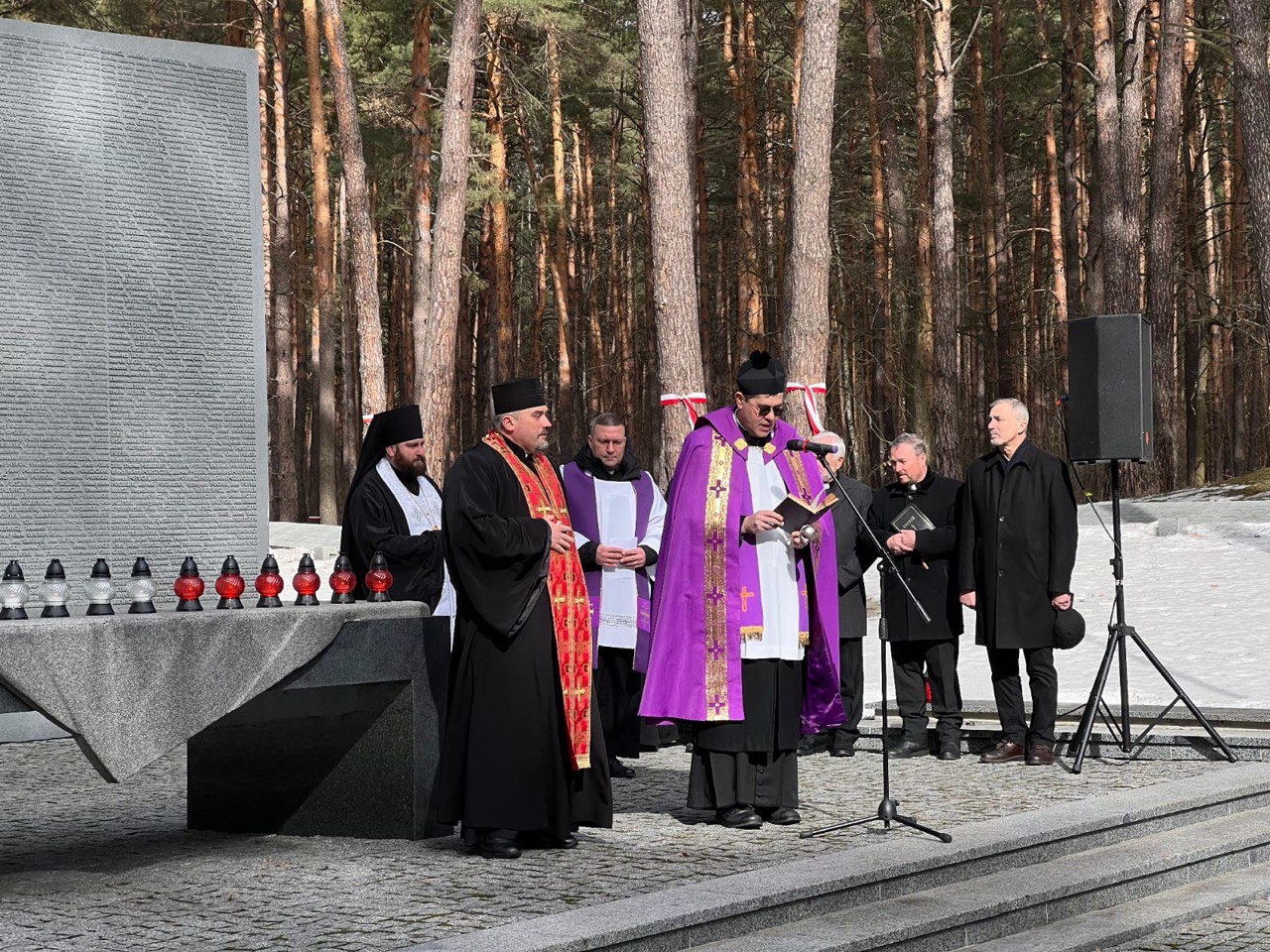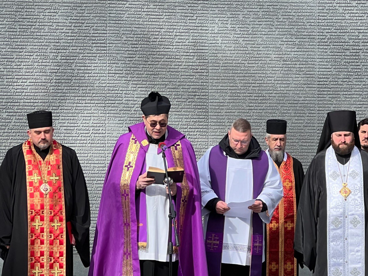 «Сьогодні з ініціативи Посольства Республіки Польща в Україні ми зібралися в меморіалі „Биківнянські могили“. Це місце, яке немає стін і окреслених меж, подібно як безмірною була жорстокість тоталітарного радянського режиму в ХХ столітті. Це місце тиші і молитви, пам’яті і пошани до всіх, хто тут поховані і на чиїх могилах ми стоїмо», — зазначив єпископ.