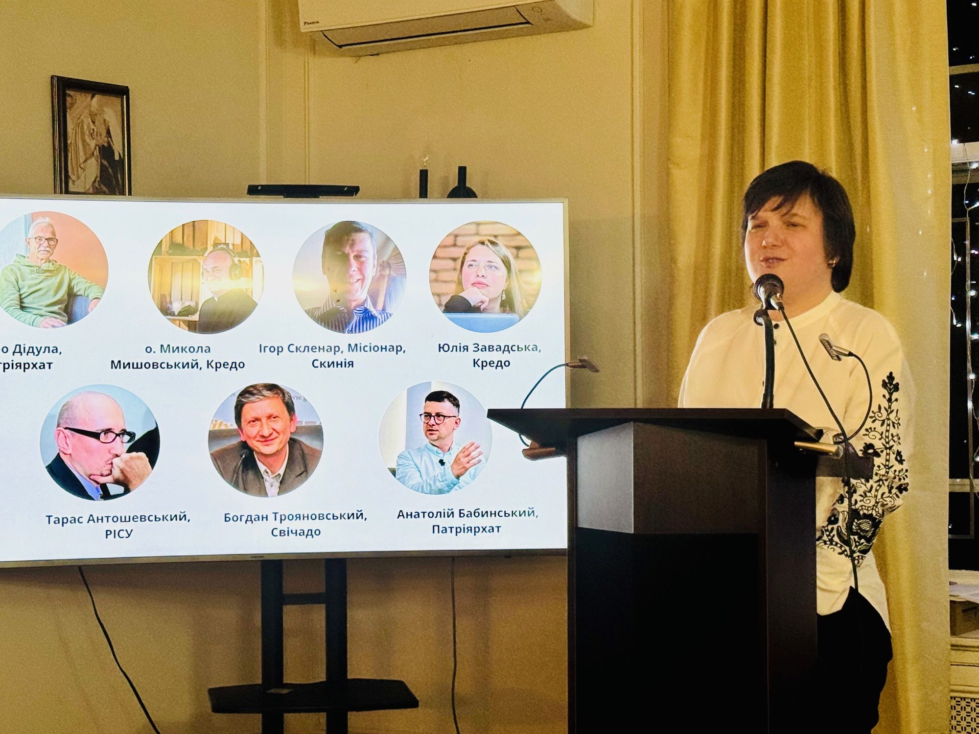Прелегентка висвітлила тему крізь науково-медійну призму, використавши інтерв’ю з творцями української католицької журналістики в часи незалежності. Серед них: Ігор Скленар — журналіст, викладач факультету журналістики ЛНУ імені Івана Франка, саме його напрацювання склали основу наукової частини цієї доповіді; Анатолій Бабинський і Петро Дідула — довголітні редактори «Патріярхату»; Тарас Антошевський — директор Релігійно-Інформаційної Служби України; Богдан Трояновський — директор видавництва «Свічадо»; отець Микола Мишовський і Юлія Завадська з Credo (який від газети 1992 року переріс у цілодобове інтернет-телебаченням у 2026)