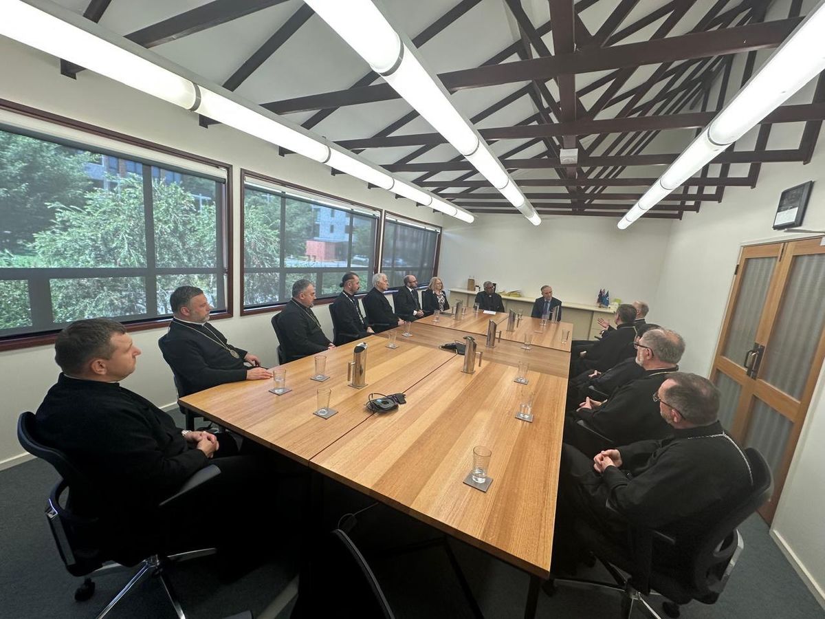 9 грудня у столиці Австралії м. Канберра єпископи-члени Постійного Синоду УГКЦ на чолі з Блаженнішим Святославом, Отцем і Главою Української Греко-Католицької Церкви, відвідали адміністративні приміщення Конференції католицьких єпископів Австралії, де зустрілися зі Секретарем цієї конференції о. Крісом де С’юза та представниками різних комісій.