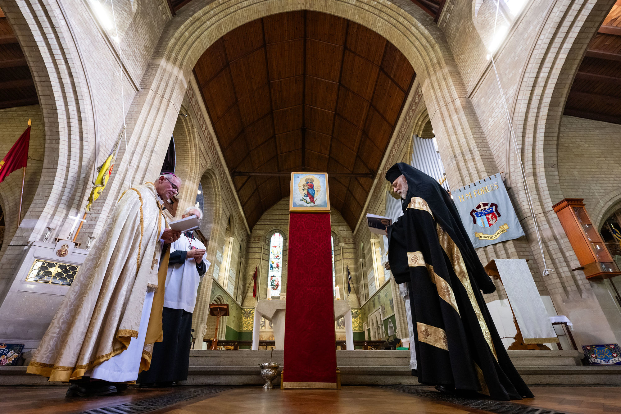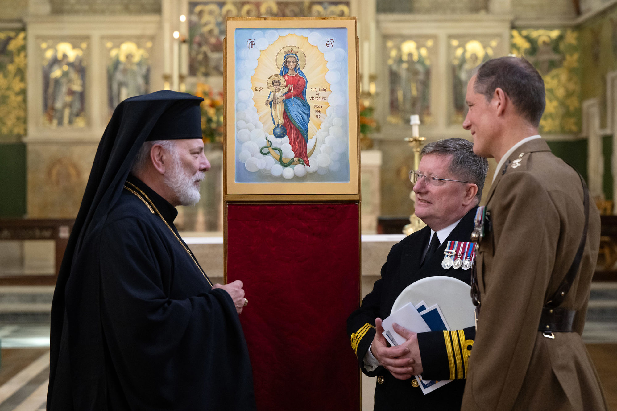 Благословення ікони здійснили владика Кеннет Новаківський, правлячий єпископ Лондонської єпархії УГКЦ, і владика Пол Мейсон, римо-католицький єпископ військових структур Сполученого Королівства.
