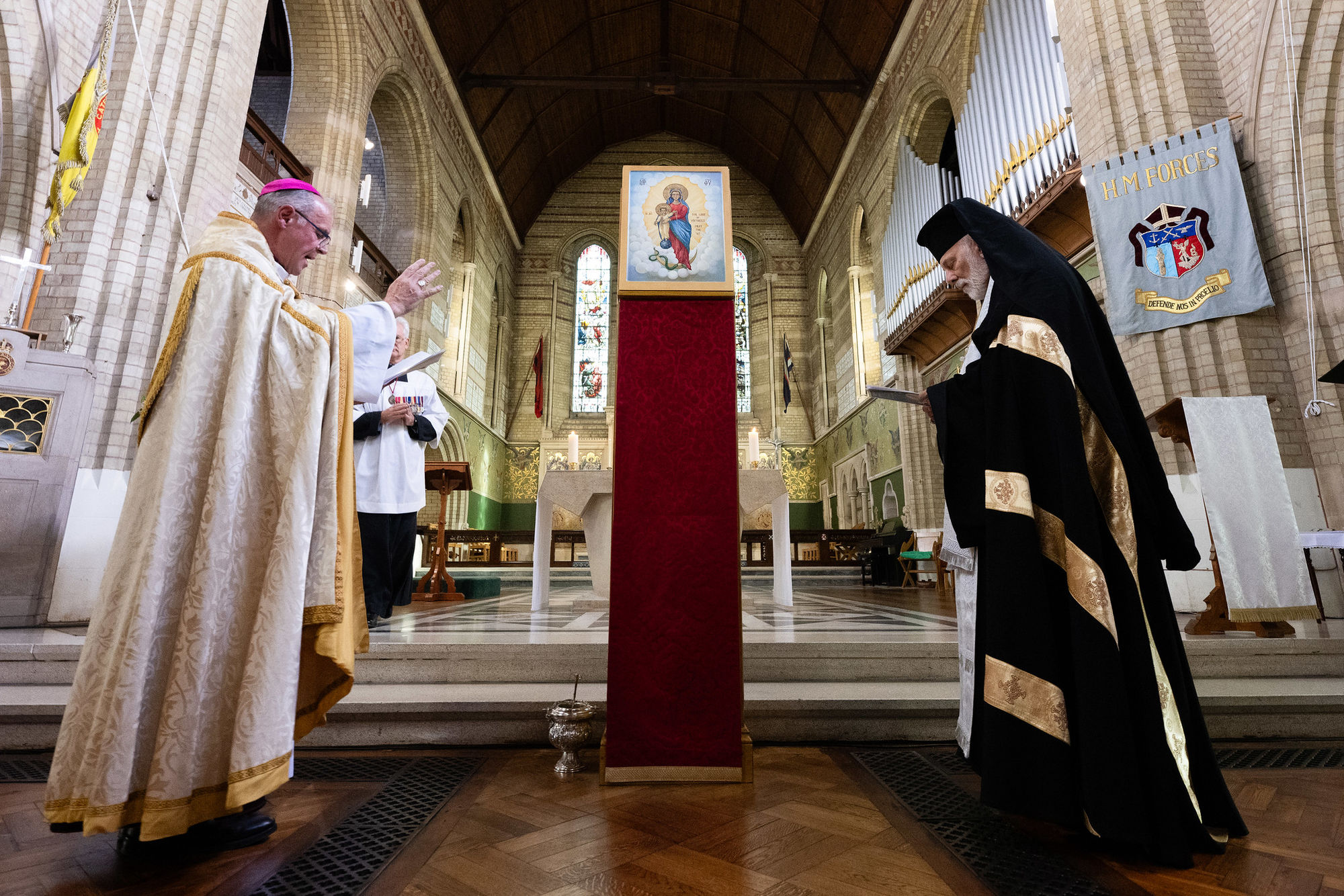 «Для мене було великою честю взяти участь у благословенні цієї ікони разом із владикою Полом Мейсоном, Католицькою військовою асоціацією, „Допомогою Церкві в потребі“ та братством Catenians, — зазначив владика Кеннет. — Ця прекрасна ікона, написана молодою українською іконописицею зі Львова, зберігатиметься в катедральному соборі Святих Михаїла й Георгія для молитовного вшанування».