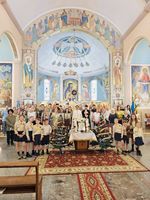Під час Божественної Літургії пластуни внесли до храму Вифлеємський вогонь, привітали вірних та українську діаспору із прийдешніми Різдвяними святами й закликали зберігати та передавати цей символ миру і надії.