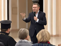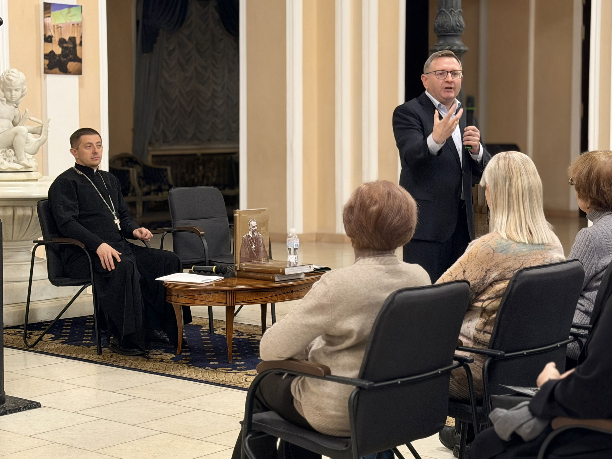 Модерував зустріч о. Роман Островський, ректор Київської Трьохсвятительської духовної семінарії.