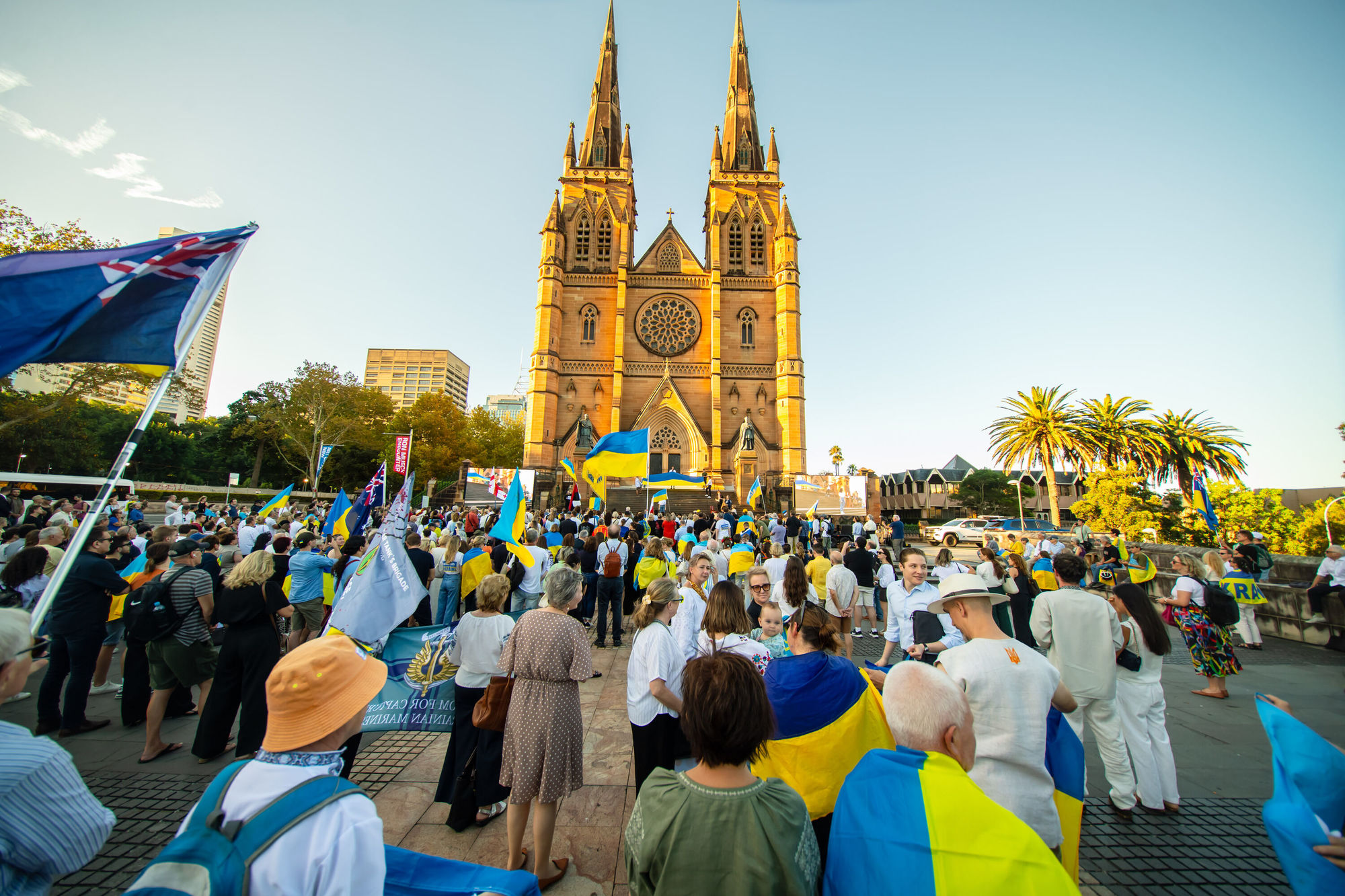 Духовенство єпархії разом із парафіянами з різних куточків Австралії також долучилося до громадських акцій на головних площах міст. Цього дня Його Еміненція Микола кардинал Бичок разом із духовенством сіднейської парафії Святого Андрія взяв участь в акції у Сіднеї. Захід відбувся на площі перед католицьким катедральним собором Святої Марії. У ньому також узяли участь Надзвичайний і Повноважний посол України в Австралії п. Василь Мирошниченко, голова СУОА та Почесний консул України в штаті Новий Південний Уельс п. Катерина Аргіру, а також представники австралійського уряду.