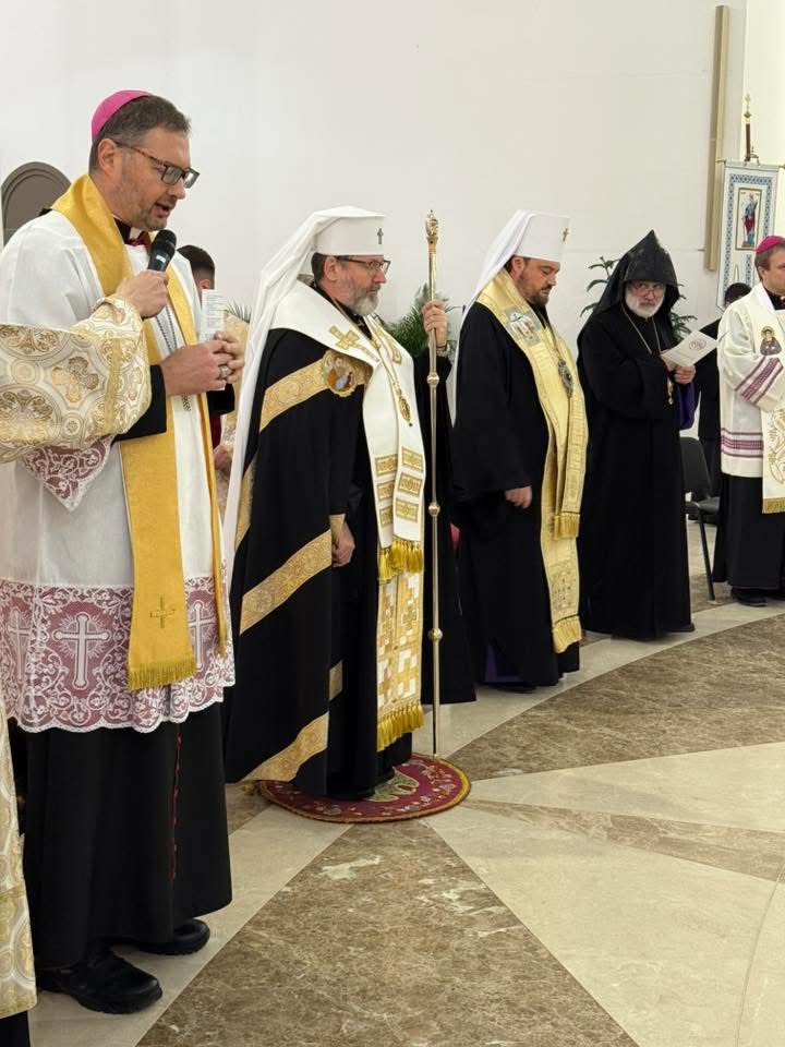 Спільну молитву очолив Отець і Глава Української Греко-Католицької Церкви Блаженніший Святослав у співслужінні з Апостольським нунцієм в Україні архиєпископом Вісвальдасом Кульбокасом, єпископом-помічником Київської архиєпархії владикою Андрієм Хім’яком, а також духовенством і представниками католицьких, православних та протестантських Церков.