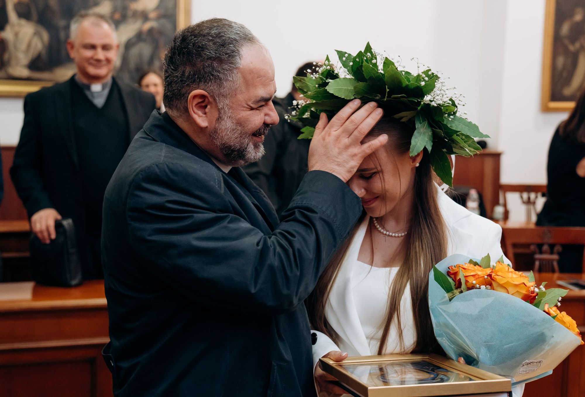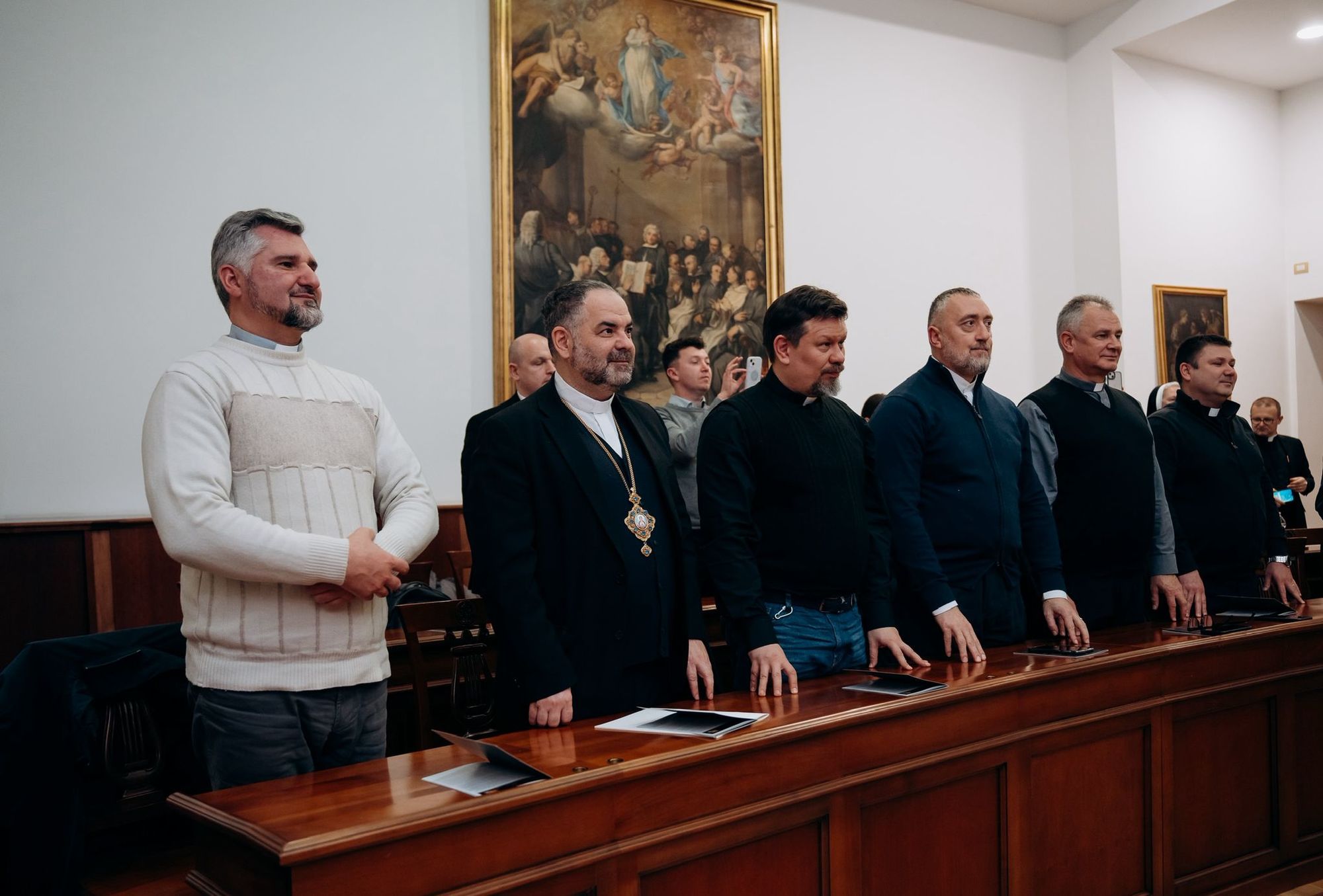 У публічному захисті дисертації взяли участь владика Григорій Комар, Апостольський адміністратор екзархату в Італії, разом із представниками духовенства екзархату, а також о. Андрій Солецький, керівник Секретаріату Глави УГКЦ у Римі.
