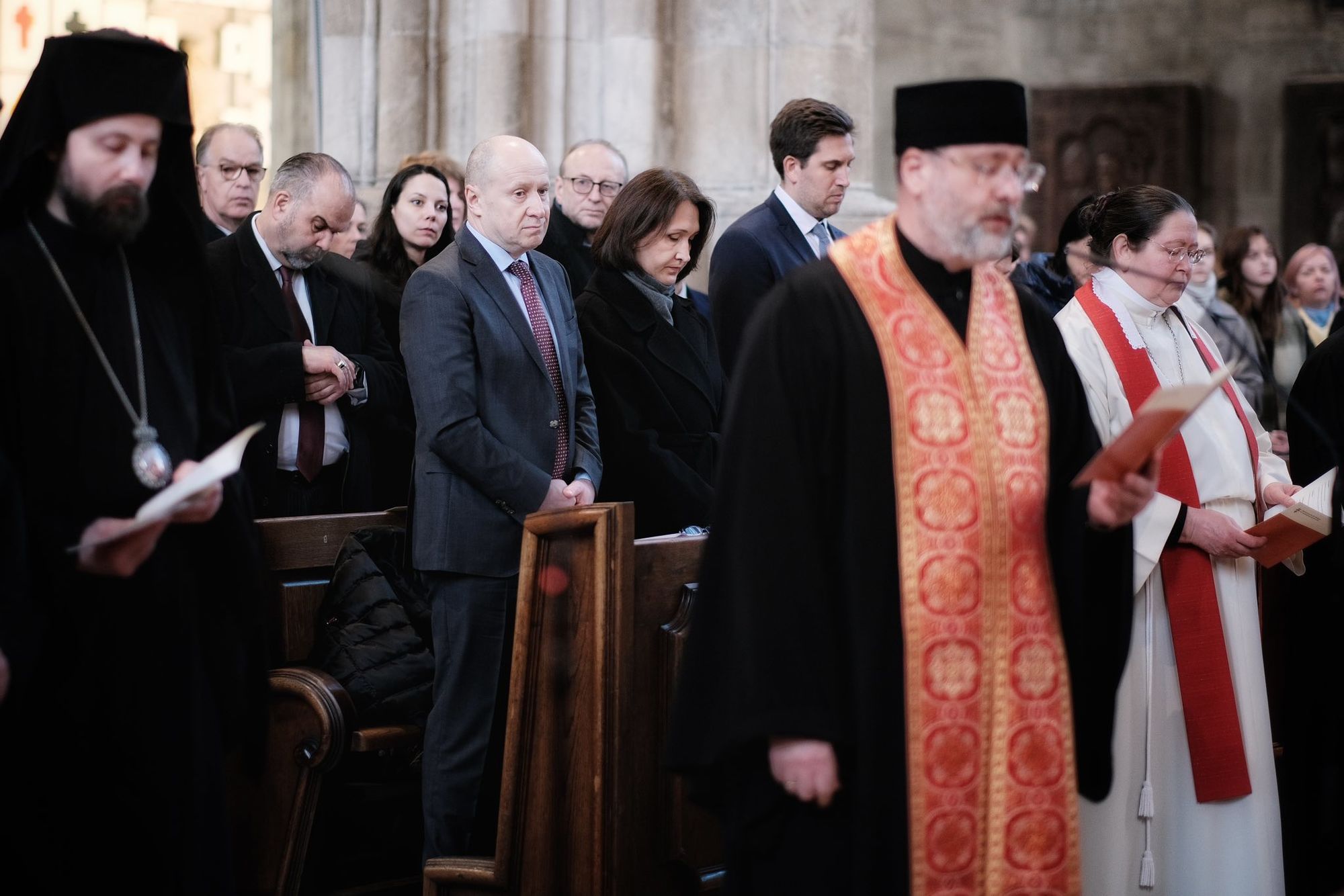 Молитву очолив генеральний вікарій Ординаріату для вірних Східних Католицьких Церков в Австрії о. Юрій Коласа у співслужінні з єпископами та духовенством різних конфесій: головою Екуменічної ради Церков в Австрії єпископом Тіраном Петросяном (Вірменська Апостольська Церква), митрополитом Арсенієм та єпископом Максимом (Вселенський Патріархат), представниками Старокатолицької, Сирійської та Румунської Православної Церков. У Богослужінні також взяв участь віденський римо-католицький єпископ Франц Шарль.