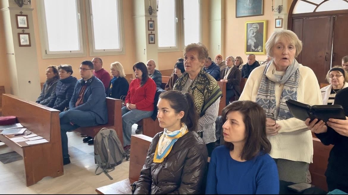 Під час Літургії вірні молилися за Україну, за полонених і поранених, за лікарів, волонтерів та всіх постраждалих від війни.