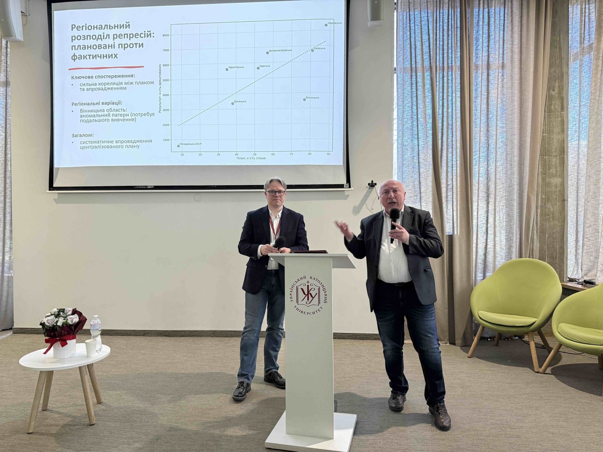 Основним доповідачем конференції став Андрій Когут, директор Галузевого державного архіву Служби безпеки України, який представив роботу «Кореляції терору: цифрові виміри масової операції ГПУ та Голодомор».