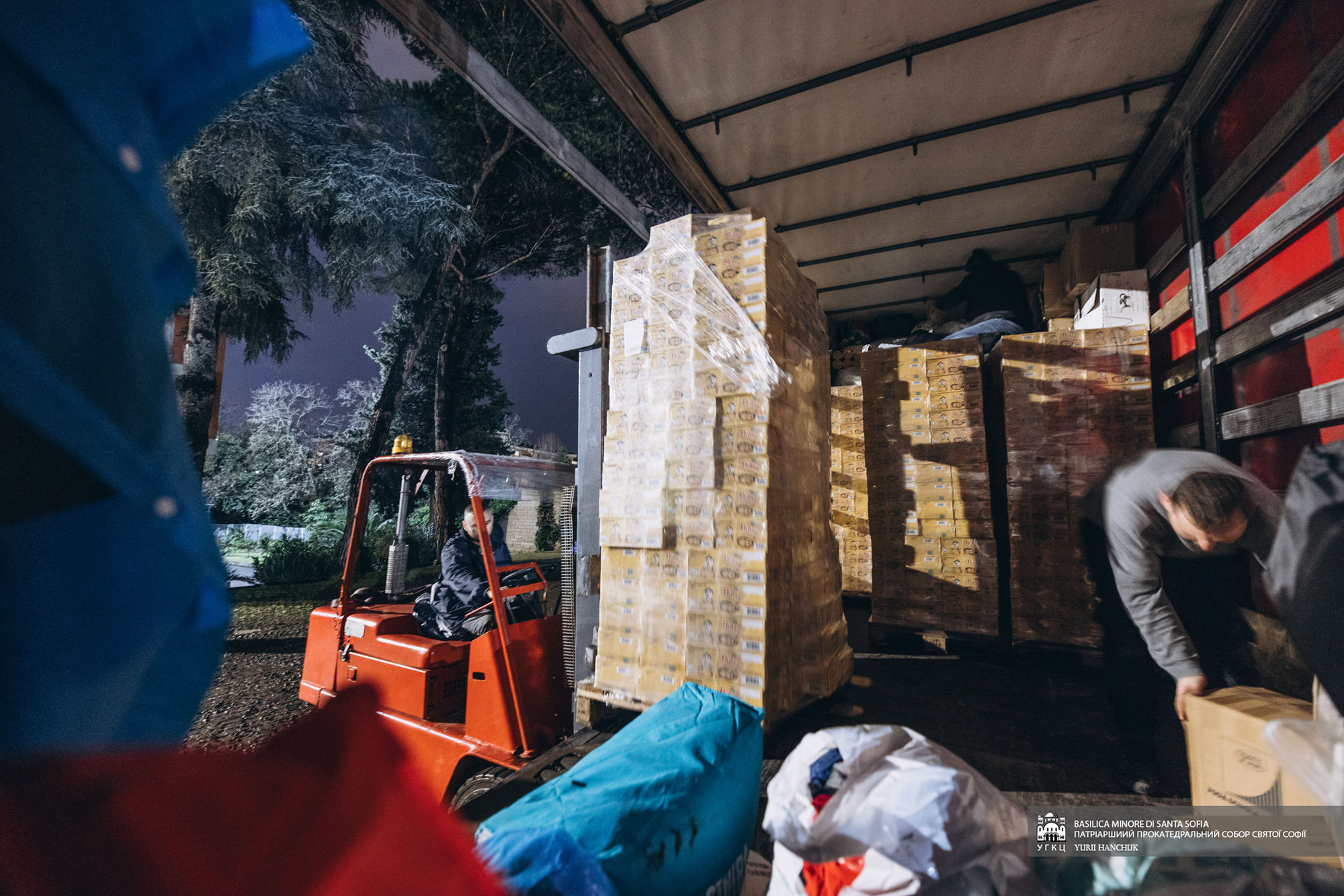 У вівторок, 23 грудня, від Патріаршого прокатедрального собору Святої Софії в Римі до України було відправлено 143-тю вантажівку з гуманітарною допомогою для українців.