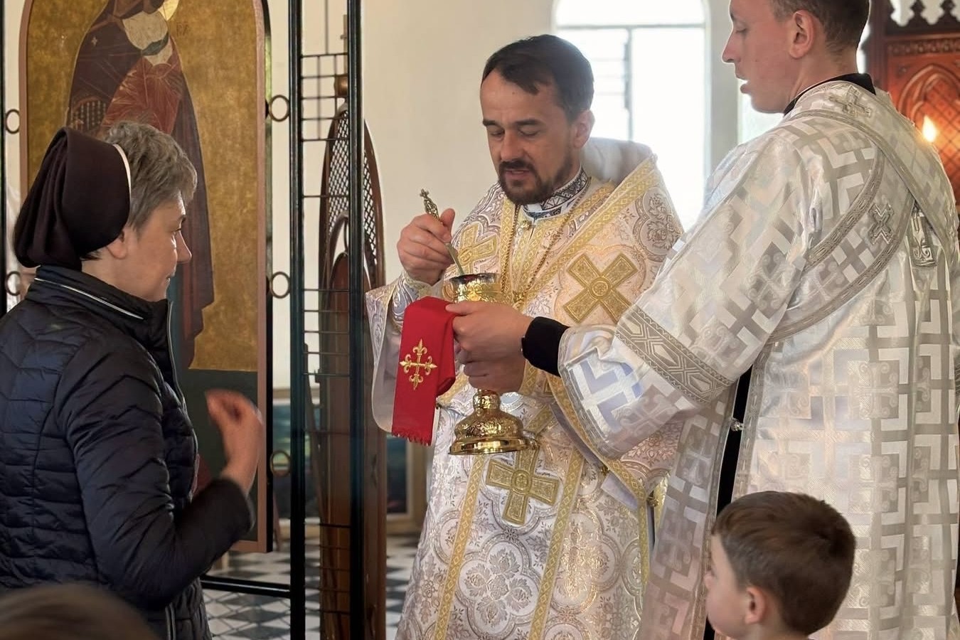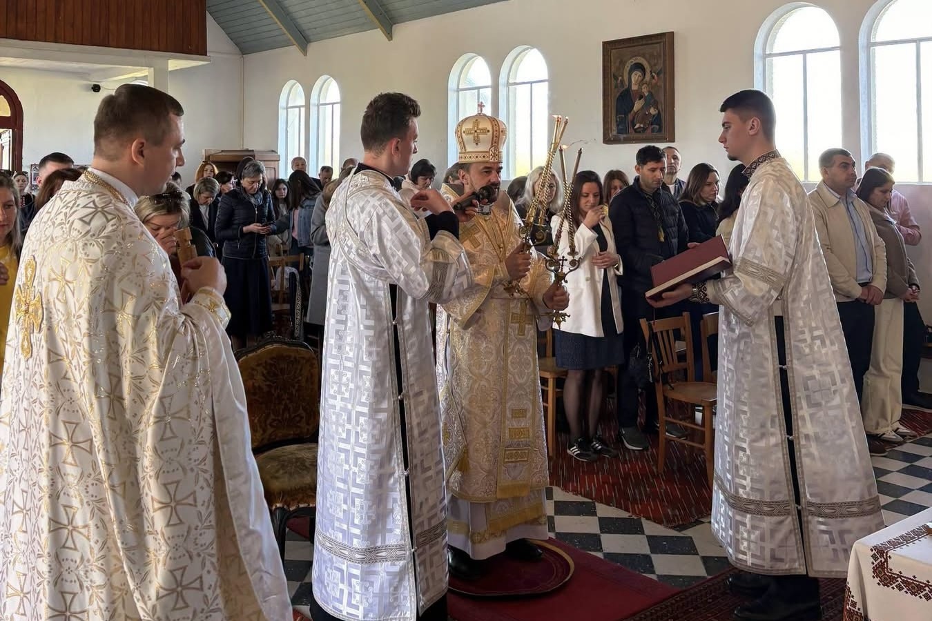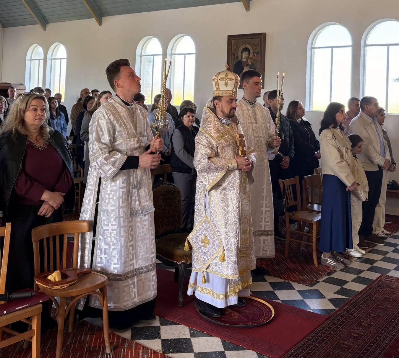 19 квітня Архиєрейську Божественну Літургію очолив владика Ігор Ранця у співслужінні настоятеля катедри Святого Володимира Великого о. Андрія Моркваса. На Богослужіння зібралися вірні з Парижа й навколишніх місцевостей. Після спільної молитви було проголошено Декрет, згідно з яким храм прикріплено до катедральної парафії Святого Володимира Великого в Парижі і служитиме їй як церковна філія богопочитання.