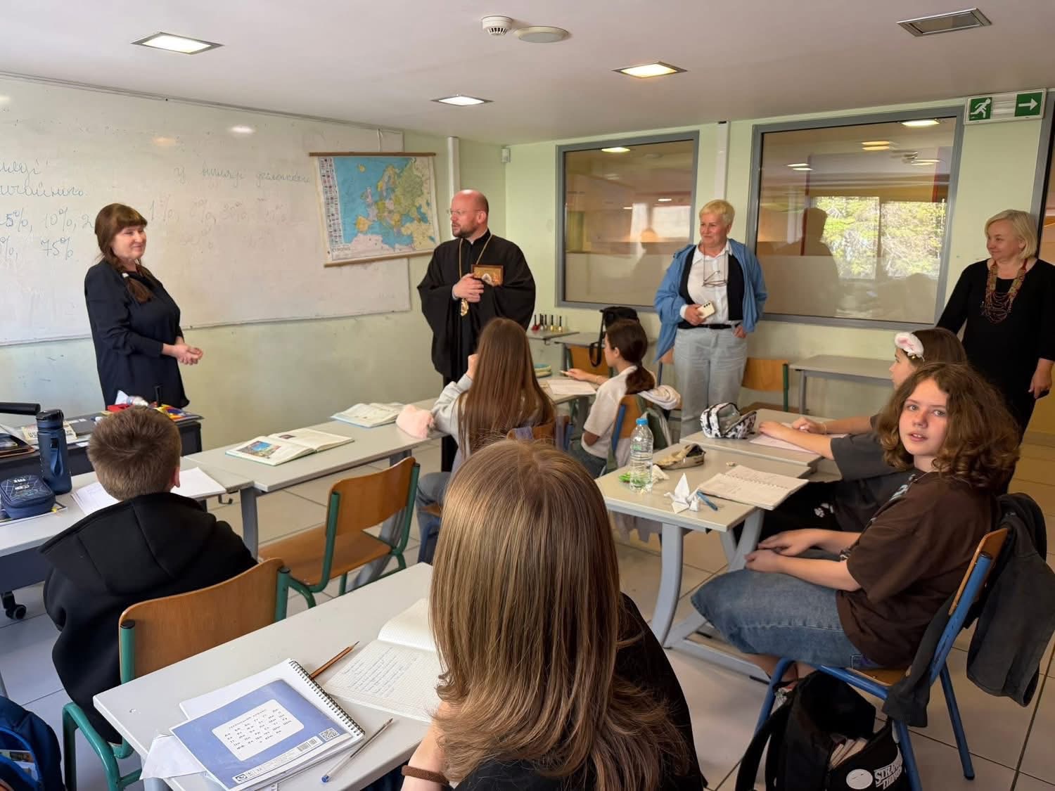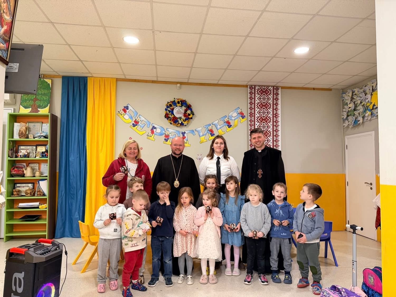 Спершу єпископ відвідав українську катехитичну школу при церковній спільноті святого Миколая Мирлікійського. Він очолив спільну молитву перед початком занять разом із духовенством, учителями, батьками та дітьми. У зверненні до учнів владика подякував їм за участь у катехитичному навчанні та наголосив на значенні духовного зростання.