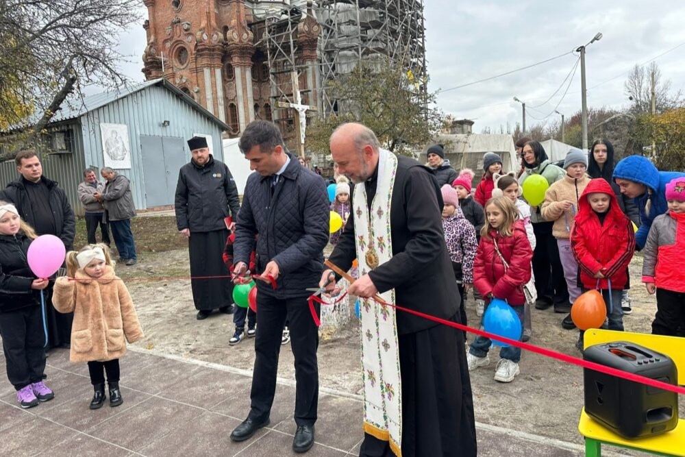 «Для нас така дитяча локація є дуже важливою, — наголосив екзарх Харківський владика Василь. — До нас приходить багато дітей — і до церкви, і на заняття, і по гуманітарну допомогу. Дякуємо благодійникам, адже майданчик — велика радість для дітей».