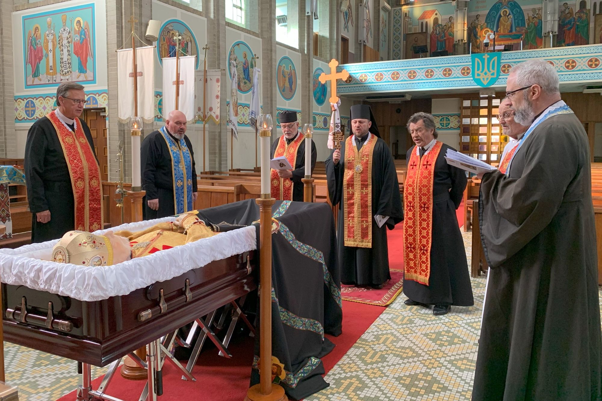 Before the beginning of the service, the coffin containing the body of the late bishop was met at the cathedral entrance by Bishop Mykola Cardinal Bychok, Eparch of Melbourne; Bishop Bryan Bayda, Eparch of Toronto and Eastern Canada; as well as clergy. The coffin was then solemnly brought into the church in a procession.