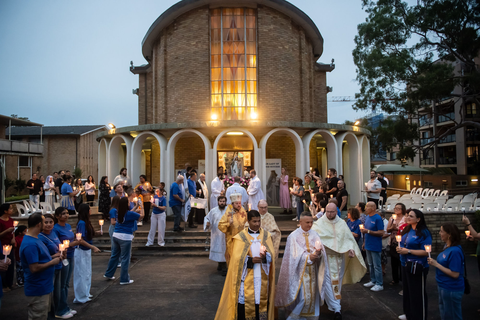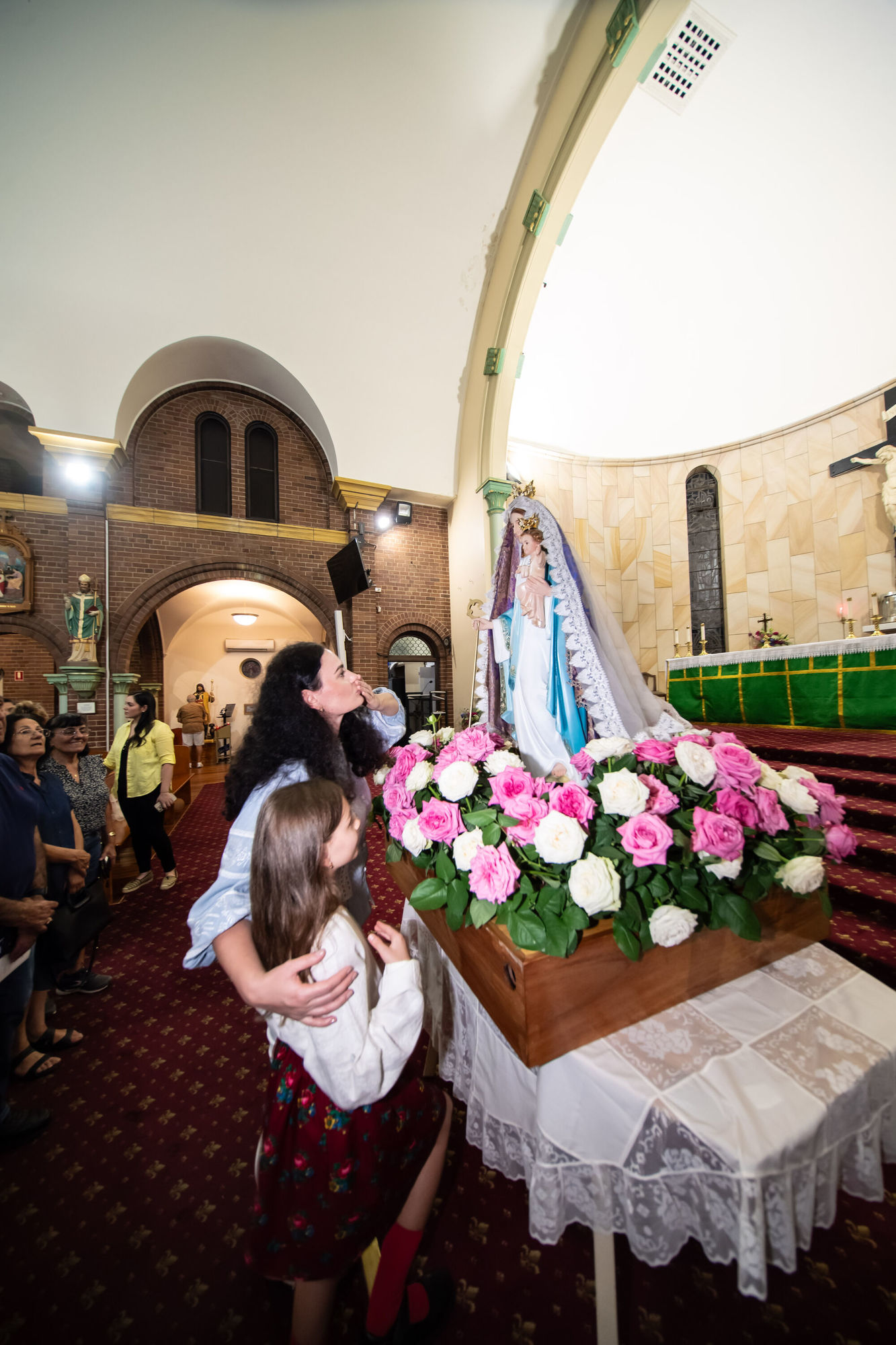 After the service, the faithful took part in a procession through the streets of the suburb of Lidcombe. The statue of Our Lady of Good Success was carried at the front, and the participants prayed the rosary together. The procession lasted about an hour and ended at St Joachim’s Church. Residents of the neighbourhood watched the procession from their homes, and many stopped to take photos or videos to commemorate the event.