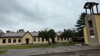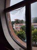 «Ogni mattina venivamo qui con mio figlio per le lezioni. Ora l’edificio è gravemente danneggiato. Molti vetri e porte rotti, il tetto distrutto. Le scarpette dei bambini sono tutte coperte di schegge di vetro…», racconta Yuliia Shestak, madre di uno studente della scuola.